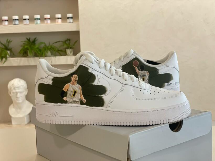 맞아요. 사실 농구화 자체가 표면이 꺼끌꺼끌하고 판이 늘어나는 재질이라 그림을 그리거나 커스텀 제작하기가 어려울 거라 생각했어요. 그런데 어느 날, 농구화를 전문적으로 수집하고 있는 이현민 고객님께서 스테픈 커리의 열렬한 팬인데 지난 해 커리가 한 경기 최다득점인 62점을 달성했을 때, 이를 기념하고자 커리 농구화 커스텀 제작 요청을 하셨어요. 그런데 농구화는 굉장히 손이 많이 가는 작업인데다 커스텀 제작 경험도 없는지라 사실 처음에는 어려울 것 같다고 말씀드렸는데, 고객님께서 어려움 감수하고 하겠다며 한번 해보자라고 하셔서 작업을 진행하게 됐어요. 그런데 예상 외로 작품의 완성도가 너무 잘 나온거에요. 그 분께서도 작품을 정말 마음에 들어 하셨고요. 농구화의 오돌도돌한 부분을 최대한 평평하게 만드는 데 포커싱을 맞췄고 자연스럽게 디자인을 표현할 수 있었던 것 같아요.