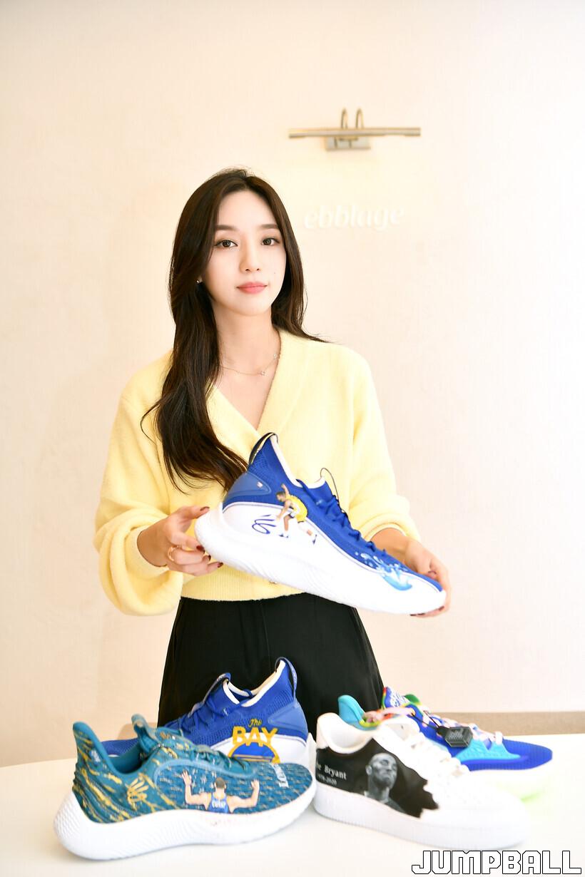 "처음에는 ‘비펠라’님이라는 분께 커스텀 작품 제작 요청을 드렸는데 커스텀 크루 분들 중에 그림 분야에선 (박)은비 작가님이 최고라고 하셔서 인연이 맺어지게 됐어요. 커스텀 의뢰 배경으로는, 2년 전에 스테픈 커리가 경기에서 코비 브라이언트의 캐리커처가 새겨진 농구화를 신고 화제가 된적이 있었어요. 그걸 보고 막연하게 한국에서도 커스텀한 슈즈를 커리에게 선물로 주면 어떨까 하는 팬심에서 시작을 하게 된거죠. 마침 그때 당시 커리가 62점으로 커리어하이를 찍었던 때이기도 했어요. 커리의 가장 아이코닉한 세리모니를 신발에 그림으로 표현하고 싶었습니다. (박)은비 작가님과 여러 차례 협의를 통해 제가 원하는 방향성을 잘 잡아주셨고 처음에 구상했던 대로 디테일한 작품이 나오게 됐던 것 같아요. 제가 의뢰 드린 작품을 수령했을 때 크게 감동했던 기억이 나네요. 제가 원했던 부분을 생동감 있게 그려주셨고. 이 작품은 ‘월클’이다 싶을 정도로 크게 만족했어요. 그 이후에 은비 작가님 인스타그램 게시물을 보니까 농구 뿐 아니라 다른 스포츠 관련 커스텀 관련 작품도 많이 제작하시는 모습을 보고 저 나름대로 무언가 스니커즈 커스텀쪽에 아이디어를 드린 것 같기도 해서 뿌듯함을 느끼기도 했답니다. 특히 선수들이나 프로 구단에서도 커스텀 작품 의뢰가 쇄도한다는 소식을 듣고는 오히려 제가 더 기분이 좋아서 감사하고 만족해했던 기억이 나네요." - 이현민 님