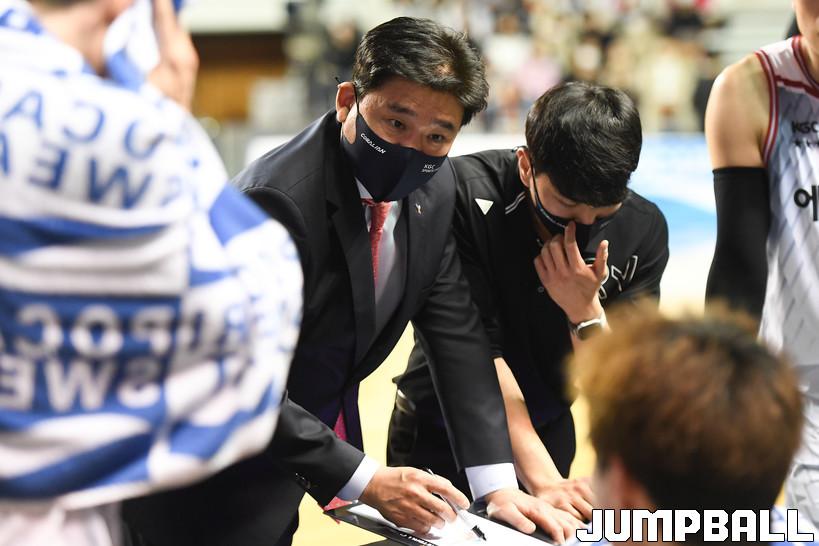 27일 전주실내체육관에서 열린 2021-2022 KGC인삼공사 정관장 프로농구 전주 KCC와 안양 KGC인삼공사의 경기, KGC 김승기 감독이 작전을 지시하고 있다.