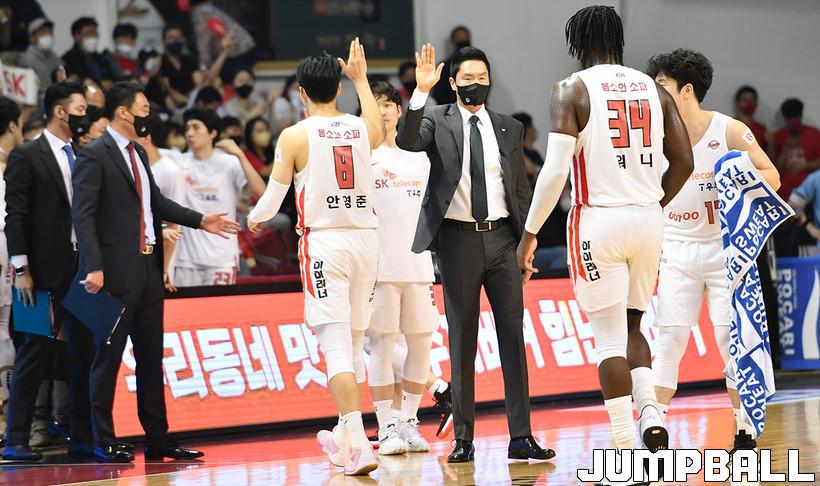 승장 전희철 감독은 “1, 2차전과 내용이 비슷했다. 3차전에서 졌을 때 끝나고 1, 2차전에서 잘된 걸 4차전에서도 해야 한다고 말했고 선수들이 잘 지켜줬다. 속공도 많이 나오고 3점슛을 허용했지만 그 후에 달리는 플레이가 좋았다. 1쿼터부터 득점력이 계속 올라가고 있는데 이건 5차전에서도 우리팀이 나아가야 할 방향이다. 오늘(8일)은 전략, 전술보다는 선수들이 한 발 더 뛰어줘서 승리할 수 있었다”라고 경기 총평을 남겼다.