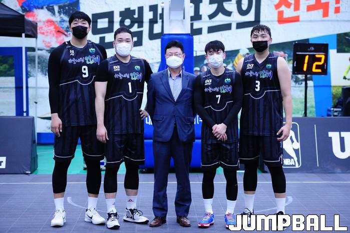 이런 와중에 대회 첫날인 9일 오후 인제군 부군수 겸 하늘내린인제 3x3 농구단 구단주인 김만호 부군수가 경기장을 찾아 선수단을 응원했다.