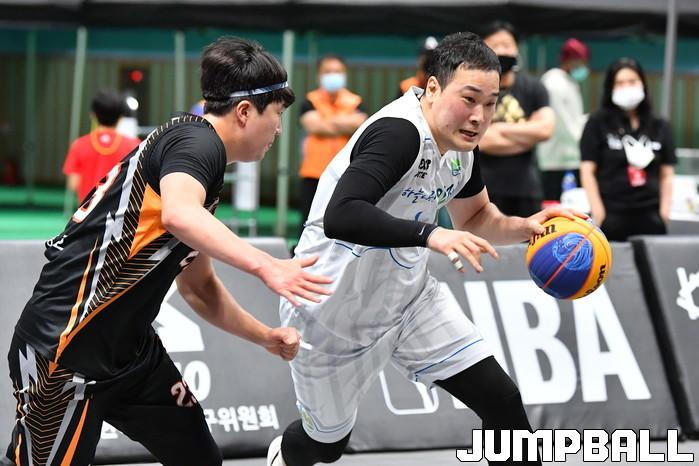4일 강원도 홍천군 홍천종합체육관에서 열린 ‘2021 KXO 3x3 홍천투어 및 KXO리그 1라운드’ KXO리그 결승에서 김민섭이 11점을 터트리며 맹활약을 펼친 하늘내린인제가 KSA체대입시학원을 21-10으로 대파하고 KXO리그 1라운드 우승을 차지했다.