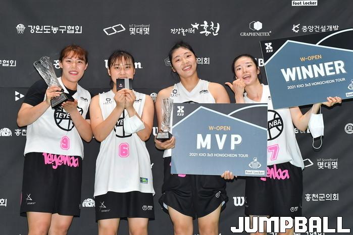 결승에서 난적 볼트를 만난 1EYENBA는 경기 중반까지 접전을 펼쳤지만 후반 들어 최정민과 홍소리가 상대 주득점원인 임희진 수비에 성공하며 다시 한번 여자오픈부 우승을 차지했다. 1EYENBA는 코리아투어 서울대회, 코리아투어 양구대회에 이어 KXO 홍천투어에서 우승을 차지해 3개 대회 연속 우승이란 기록을 세우게 됐다.