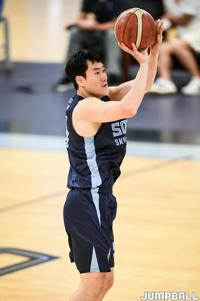 25일 고양 소노 아레나에서 열린 고양 소노와 명지대의 비시즌 연습경기, 소노 김진유가 공격을 시도하고 있다.