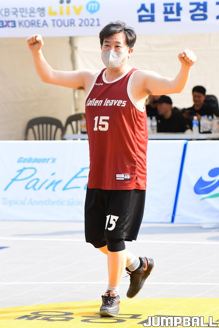 19일 강원도 양구군 청춘체육관 앞 특설코트에서 열린 KB국민은행 Liiv M 3x3 코리아투어 2021 2차 양구대회(이하 코리아투어) 남자오픈부 예선에 백용현 대한민국농구협회 부회장이 출전했다.