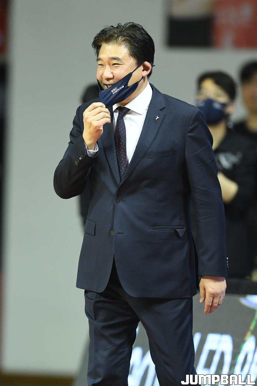 KGC 김승기 감독은 “수비는 문제가 없을 거다. 정규리그에서 쓰지 않았던 백트랩을 쓰면서 효과를 봤다. 중요한 건 공격에서 (전)성현이가 좋지 않았고, (변)준형이가 다쳤다. 오늘(12일)은 (박)지훈이, 성현이가 초반에 나가서 잘해줘야 승산이 있다”고 말했다.