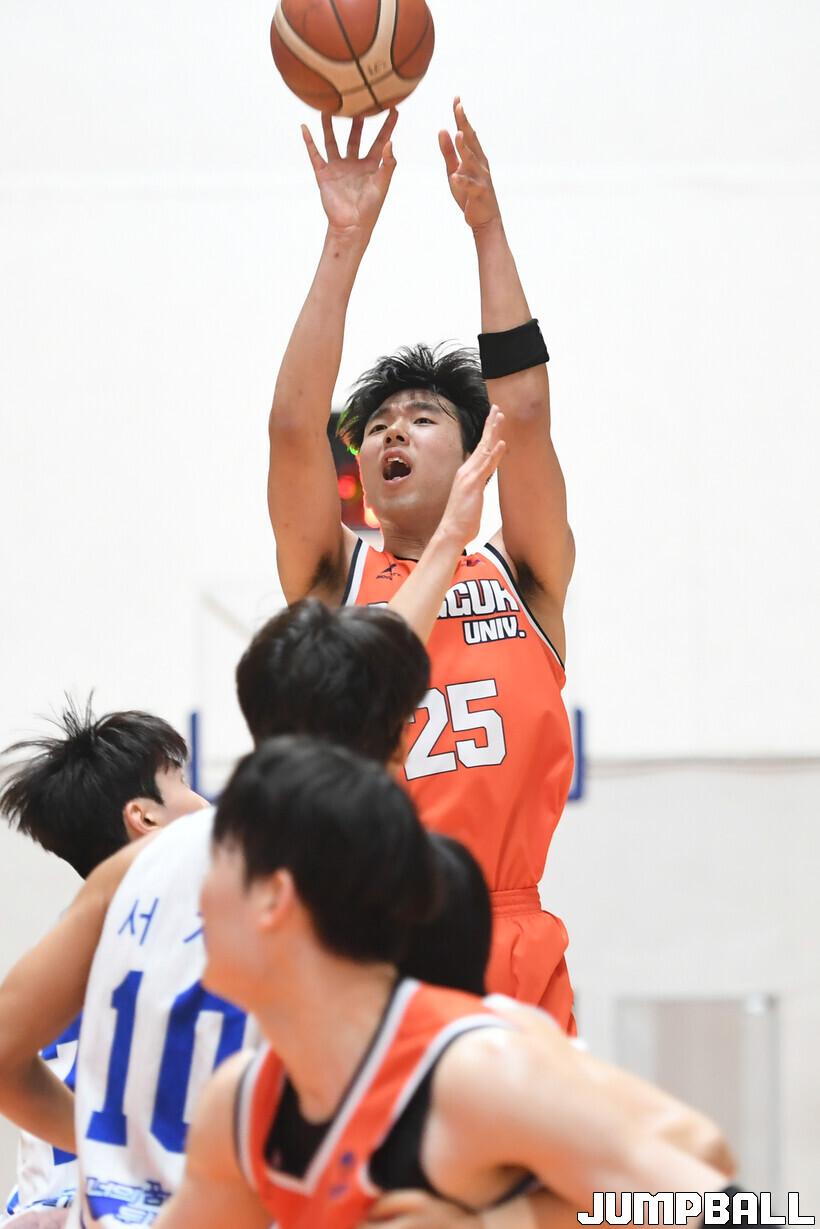 [점프볼=필동/박상혁 기자] 11일 동국대학교 서울캠퍼스 체육관에서 열린 2025 KUSF 대학농구 U-리그 동국대와 중앙대의 경기, 동국대 지용현이 슛을 시도하고 있다.
