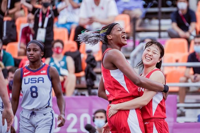 27일 도쿄 아오미 어반 스포츠 파크에서 열린 2020 도쿄올림픽 여자 3x3 농구 예선에서 일본이 미국을 20-18로 꺾는 파란을 일으켰다.
