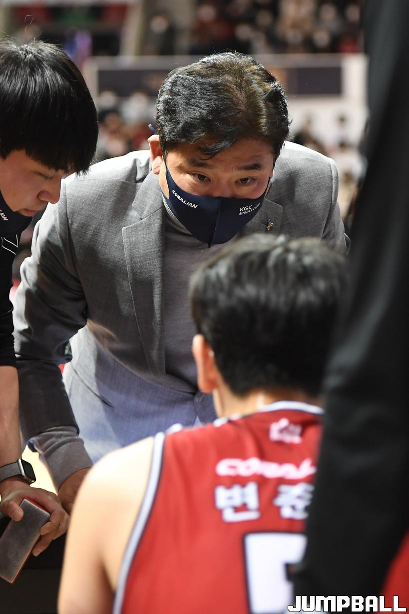 KGC 김승기 감독은 “코로나19 여파로 훈련을 거의 못했다. 선수들이 정상적인 컨디션이 아님에도 티가 많이 나지 않을 정도로 잘해줬다. 너무 고마울 따름이고, 하고자 하는 마음이 대단한 것 같다. 3연승을 한 덕분에 좀 더 여유를 갖고 남은 경기를 할 수 있게 됐다. 오래 쉬었는데도 선수들 몸 상태가 나쁘지 않아서 편안하게 준비를 할 수 있는 상황이다”며 선수들에게 고마움을 전했다.
