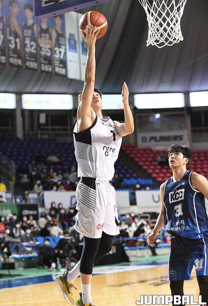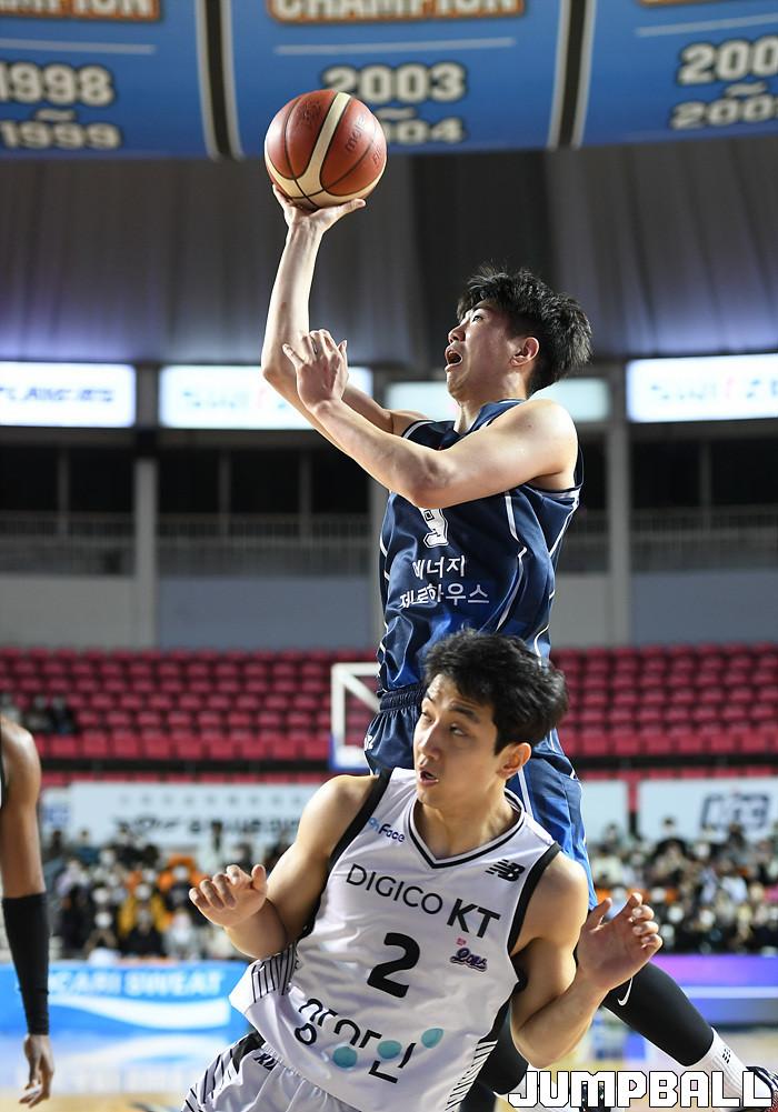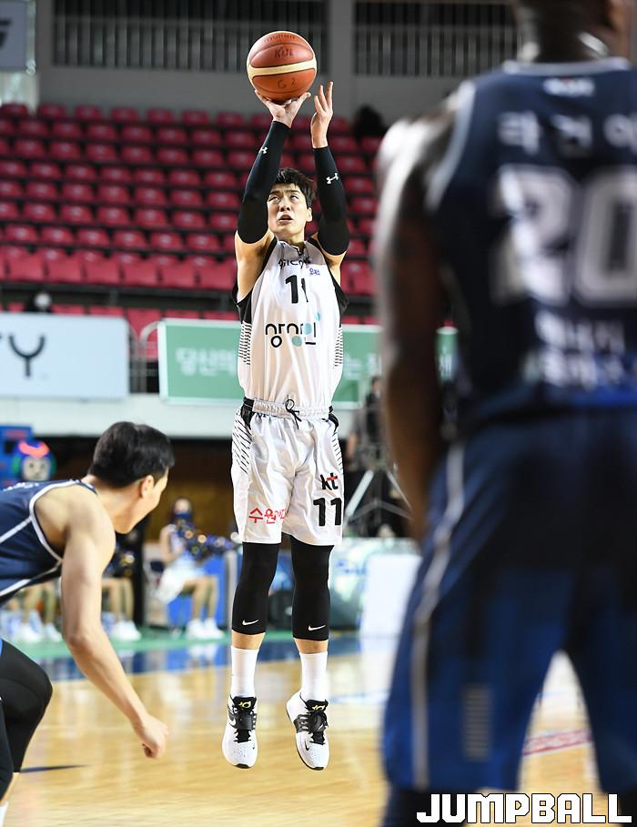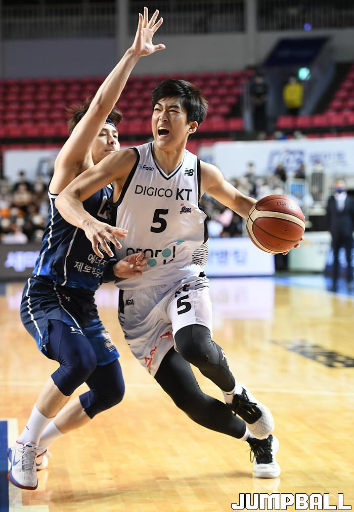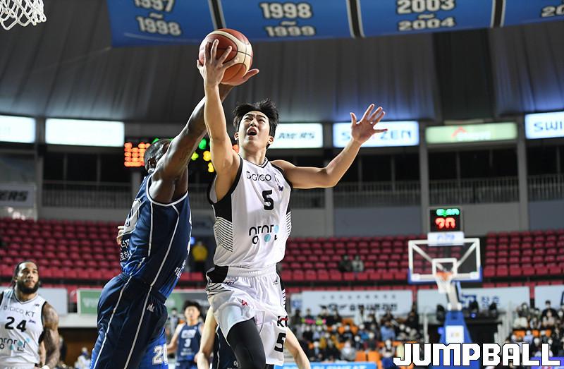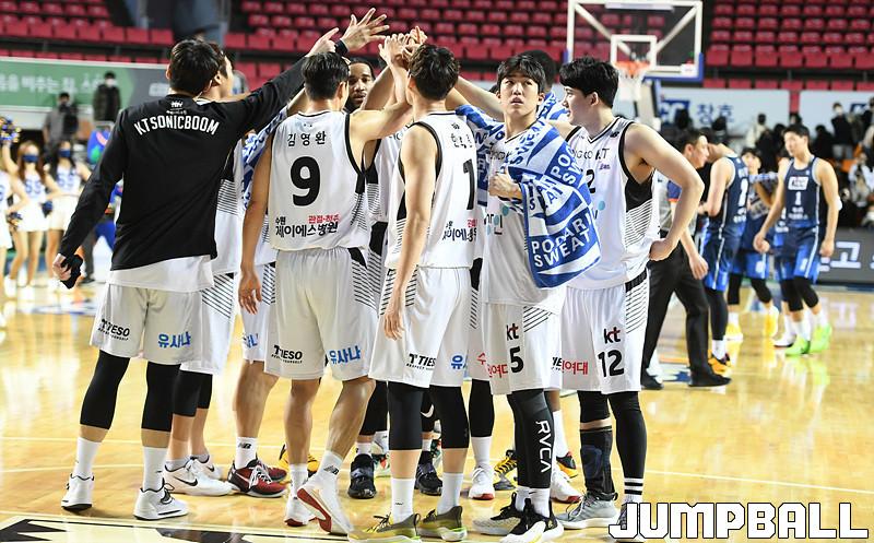 KT의 허훈(25점 4리바운드 5어시스트)이 맹활약하며 승리를 이끌었고, 정성우(11점 6리바운드 3어시스트)와 박지원(12점 5리바운드)도 존재감을 뽐냈다.