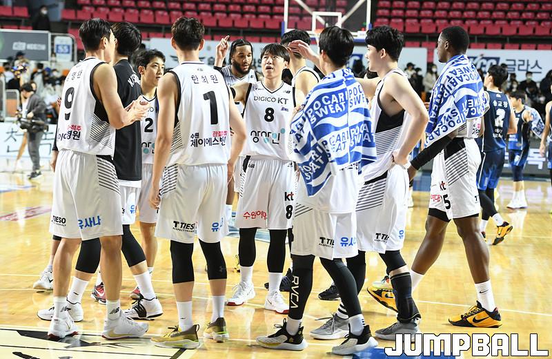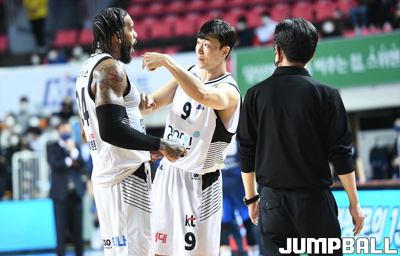 수원 KT는 6일 전주체육관에서 열린 2021-2022 KGC인삼공사 정관장 프로농구 전주 KCC와의 경기에서 91-73으로 승리했다.