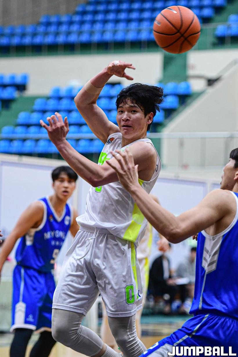 15일 명지대학교에서 열린 2022 KUSF 대학농구 U-리그 명지대와 성균관대의 경기, 성균관대 이현호가 패스를 시도하고 있다.