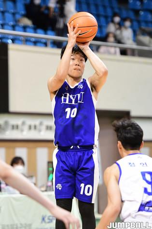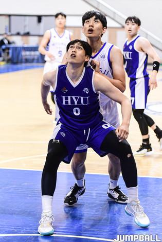 9일 한양대 서울캠퍼스 체육관에서 열린 2022 KUSF 대학농구 U리그 한양대와 명지대의 경기, 한양대 신지원이 박스아웃을 하고 있다.