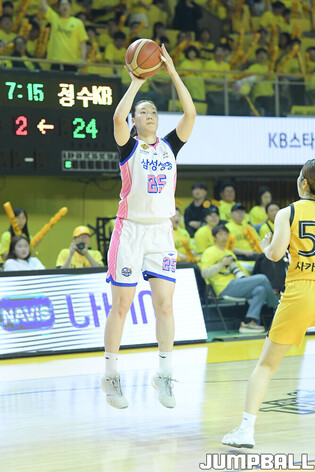 [점프볼=청주/유용우 기자] 22일 청주체육관에서 열린 청주 KB스타즈와 용인 삼성생명의 BNK금융 2025~2026 여자프로농구 챔피언결정전 1차전, 삼성생명 강유림이 돌파를 시도하고 있다.
