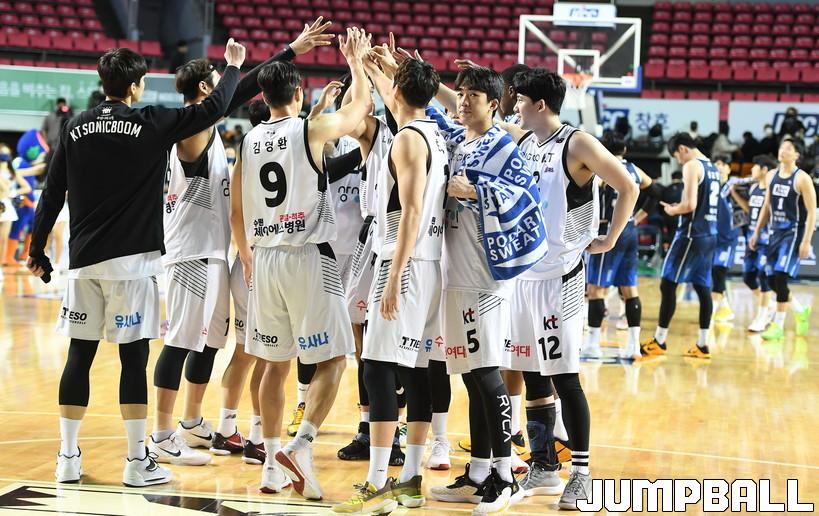 이날 승리로 4연승을 달린 KT. 구단 역사상 처음으로 KCC전 전승까지 기록하면서 승리의 기쁨이 두 배가 됐다.