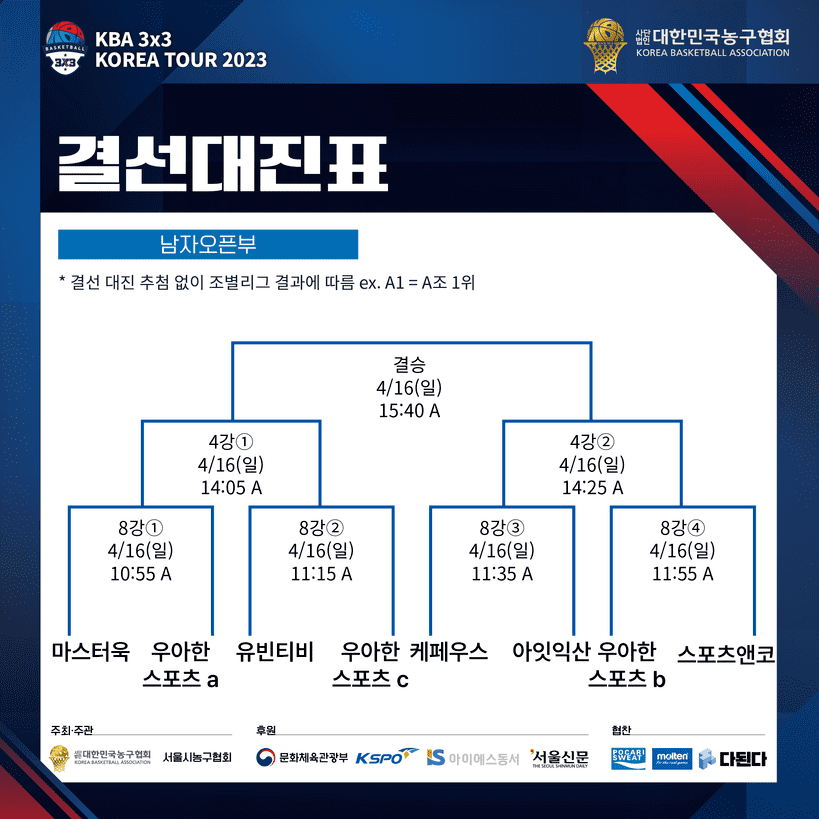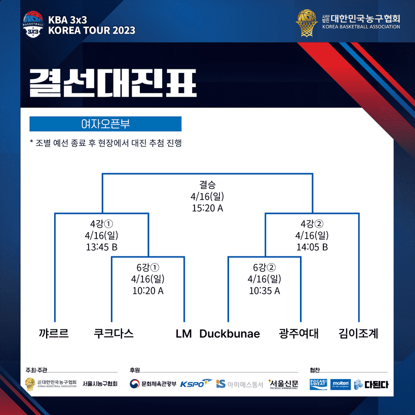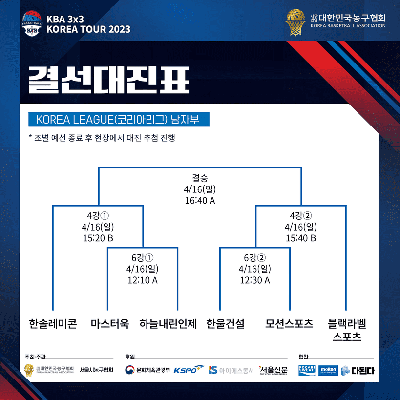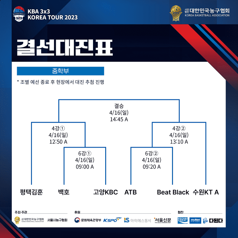 *KBA 3x3 KOREA TOUR 2023 1차 서울대회 결선 대진표*
