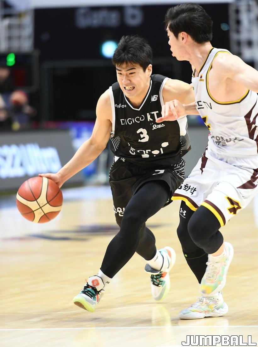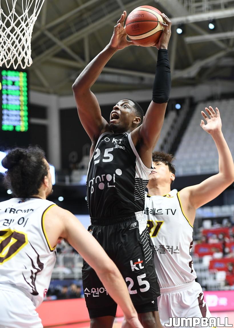 최근 KT의 실질적인 에이스로 자리매김 한 정성우는 이날 경기에서도 날아올랐다. 정성우는 이날 3점슛 2개 포함 14점 3리바운드 5어시스트를 기록하며 팀을 승리로 이끌었다. 캐디 라렌 역시 결승 득점 포함 19점 14리바운드로 골밑을 든든히 지켰다.