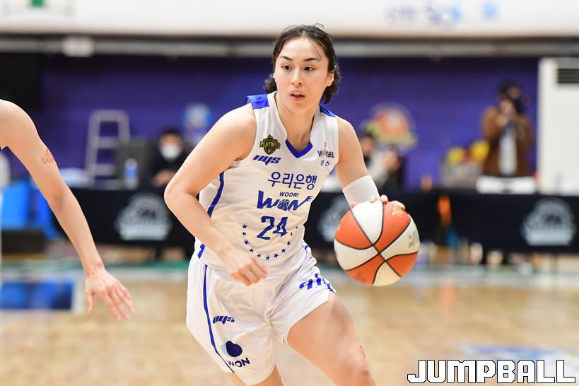 7일 인천도원체육관에서 열린 '삼성생명 2021-2022 여자프로농구 플레이오프' 인천 신한은행과 아산 우리은행의 경기, 우리은행 김소니아가 돌파를 시도하고 있다.