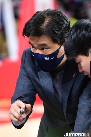2일 창원실내체육관에서 열린 2021-2022 KGC인삼공사 정관장 프로농구 창원 LG와 안양 KGC인삼공사의 경기, KGC 양희종이 아쉬워 하고 있다.