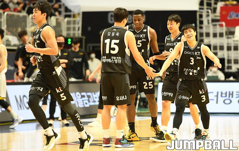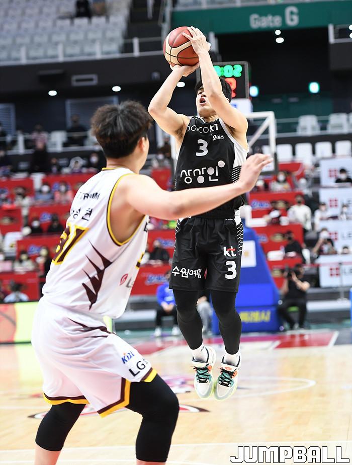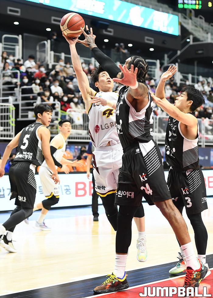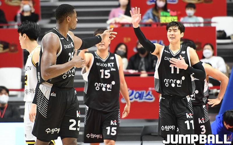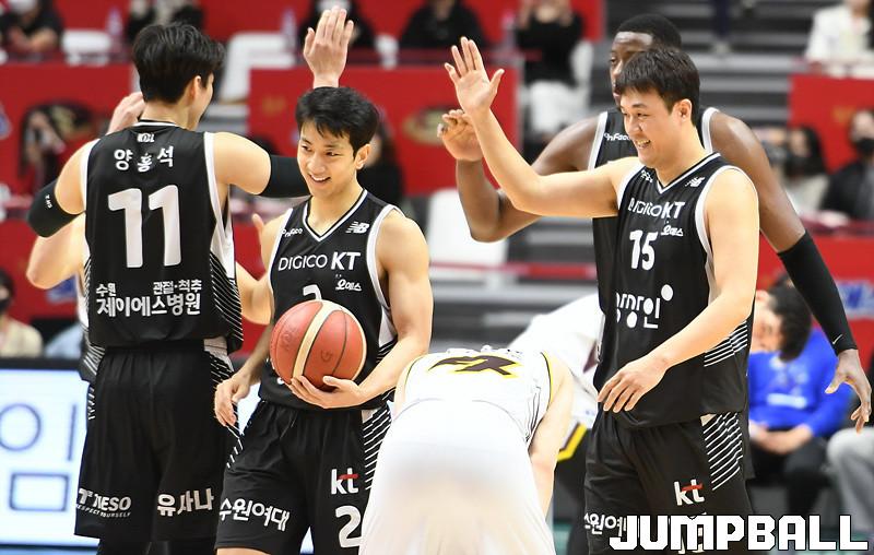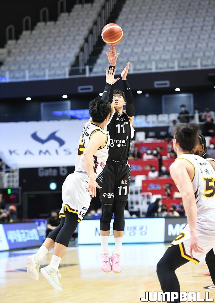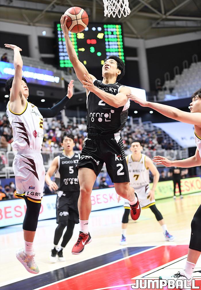 수원 KT는 27일 수원 KT 소닉붐 아레나에서 열린 2021-2022 KGC인삼공사 정관장 프로농구 정규리그 6라운드 홈경기에서 창원 LG를 88-85로 이겼다.
