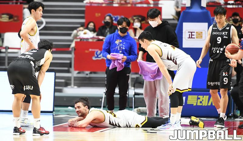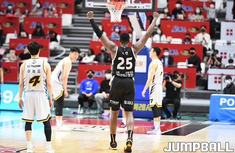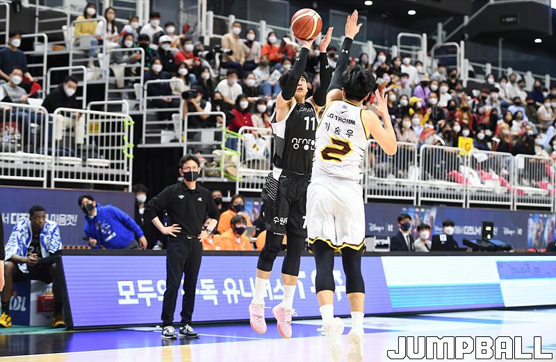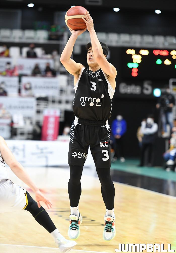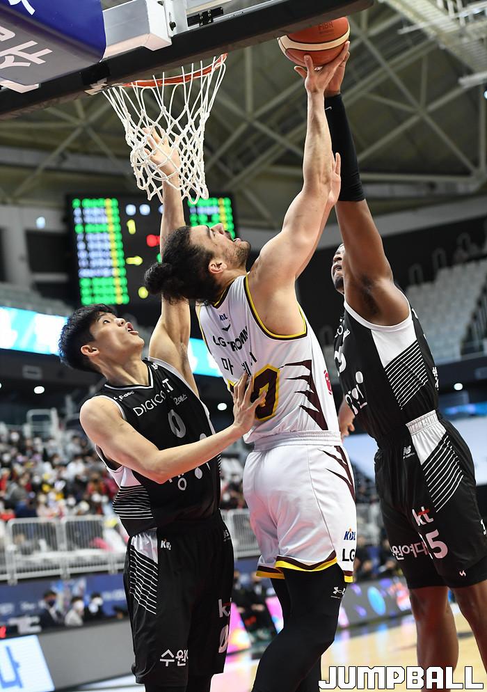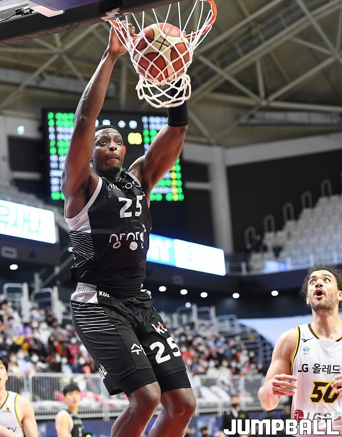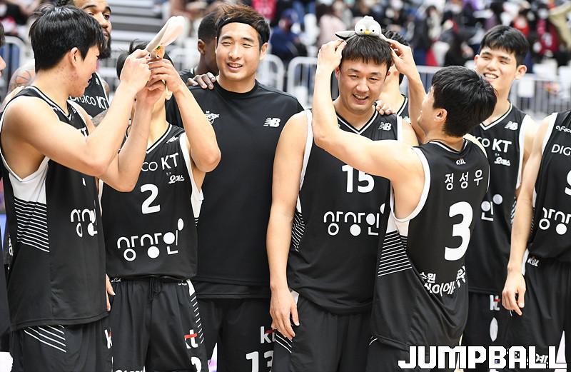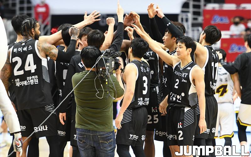 수원 KT는 27일 수원 KT 소닉붐 아레나에서 열린 2021-2022 KGC인삼공사 정관장 프로농구 정규리그 6라운드 홈경기에서 창원 LG를 88-85로 이겼다.