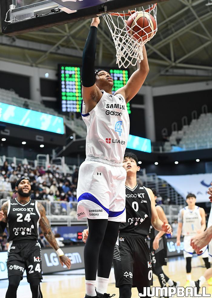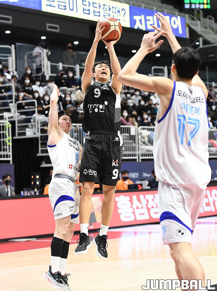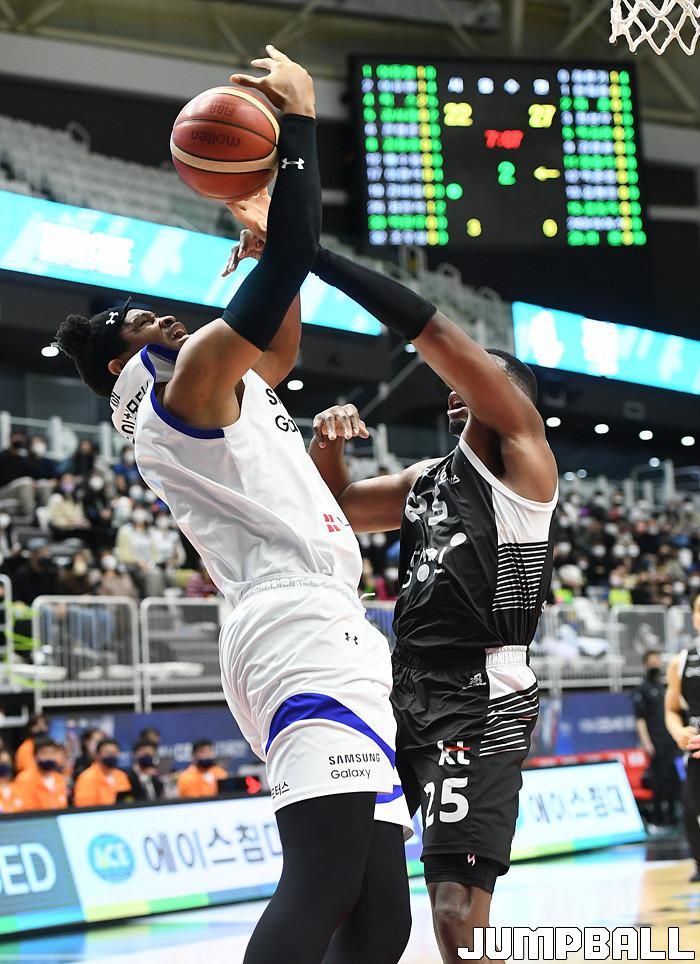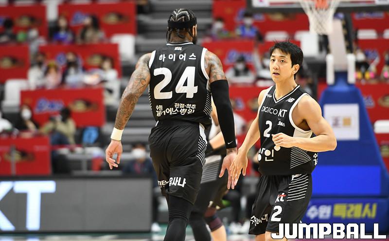 수원 KT는 20일 수원 KT 소닉붐 아레나에서 열린 서울 삼성과의 2021-2022 KGC인삼공사 정관장 프로농구 정규리그 홈경기에서 98-83 완승을 따냈다.