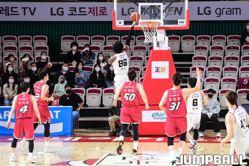 2일 창원실내체육관에서 열린 2021-2022 KGC인삼공사 정관장 프로농구 창원 LG와 안양 KGC인삼공사의 경기, LG가 KGC에 78-59로 승리했다. LG와 KGC 경기 화보.