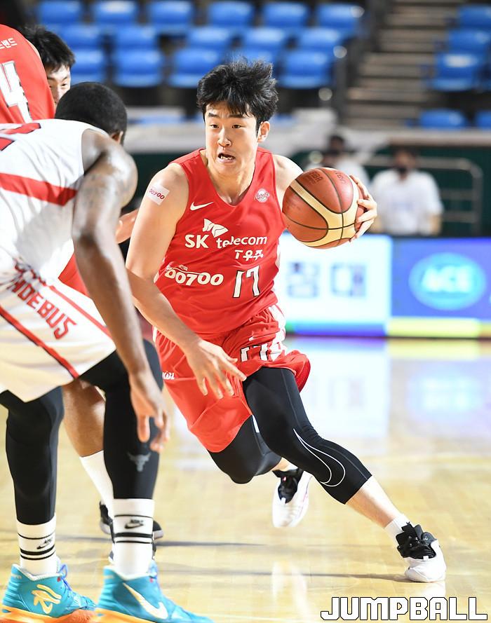 9일 잠실학생체육관에서 열린 2021-2022 KGC인삼공사 정관장 프로농구 서울 SK와 울산 현대모비스의 경기, SK 이현석이 순간 돌파를 시도하고 있다.