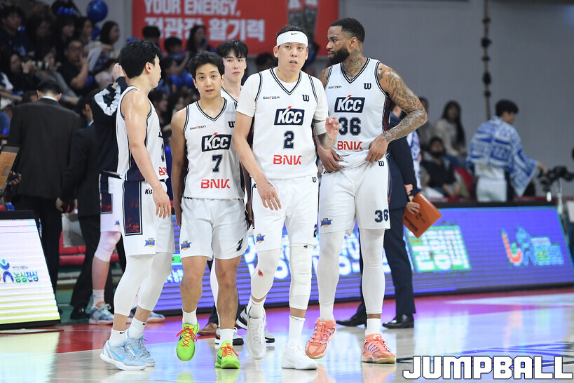 KCC는 1쿼터 한때 12점 차(17-29)까지 앞섰지만, 2쿼터 아반도에게 7점 5리바운드를 내주며 추격을 허용했다. 결국 3점 차(46-43)까지 쫓긴 채 전반을 마쳤다.