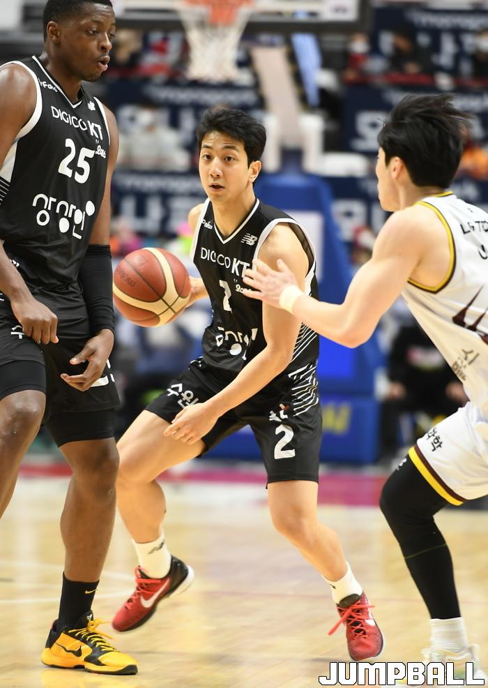 어시스트가 점차 쌓이자 LG 수비도 흔들렸고, 허훈은 이 틈을 놓치지 않았다. 2쿼터 중반 스텝백으로 첫 득점에 성공하는 등 3점슛 2개를 터뜨린 것. 김현민의 3점슛을 어시스트하는 등 KT의 고른 득점분포를 이끄는 본연의 임무도 잊지 않았다.