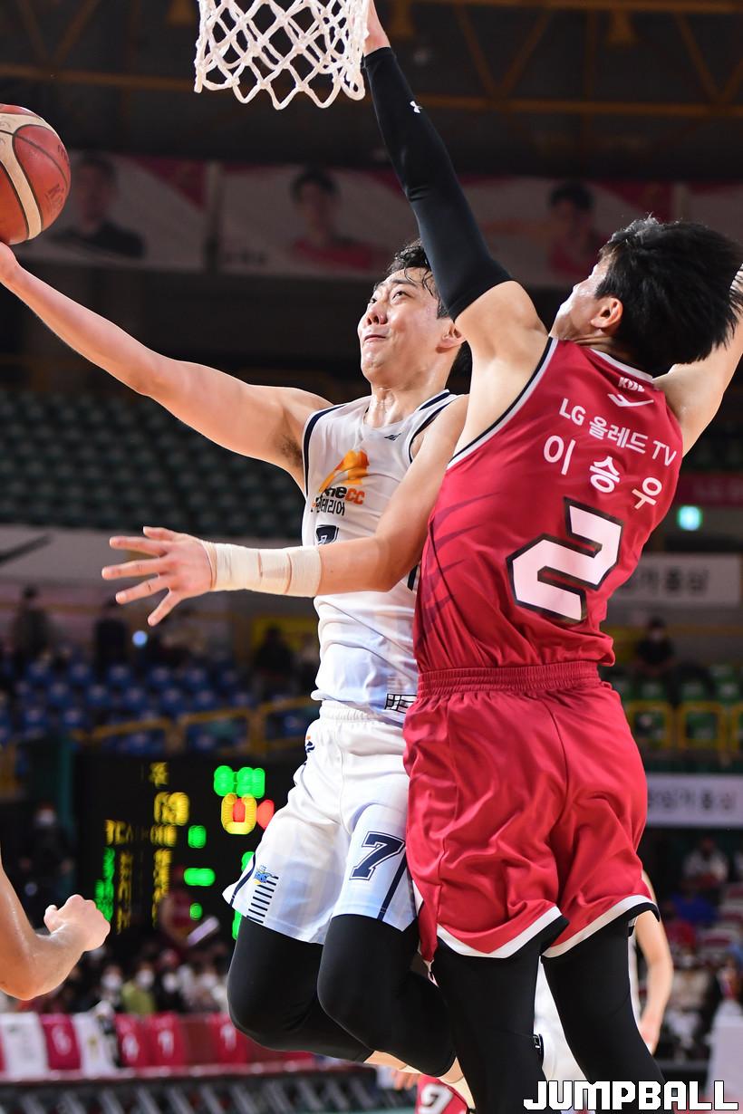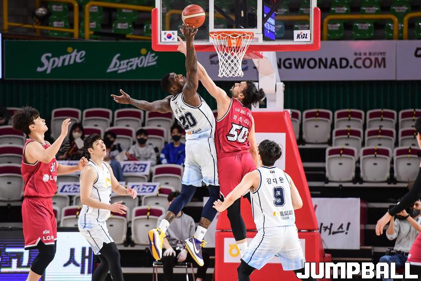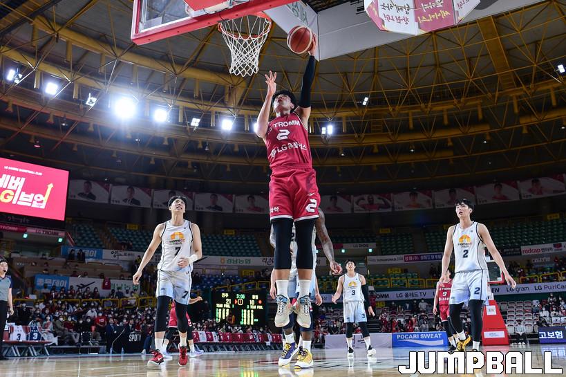 3일 창원실내체육관에서 열린 2021-2022 KGC인삼공사 정관장 프로농구 창원 LG와 전주 KCC의 경기, KCC가 LG에 74-68로 승리했다. LG와 KCC 경기 화보.