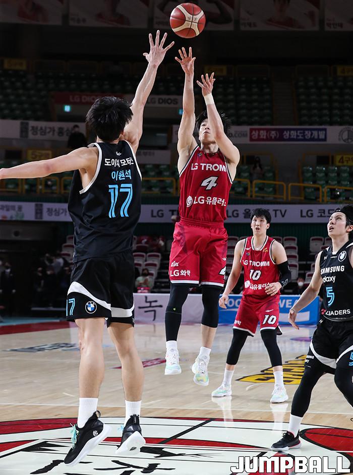 양 팀은 전반 동안 우열을 가리지 못했다. 득점포가 고르게 분산되며 팽팽하게 맞섰다. LG는 최근 절정의 컨디션을 자랑 중인 이재도를 선봉에 내세워 먼저 리드(18-17)를 잡았다. 이재도는 1쿼터에만 8점을 올리며 공격을 주도했다.