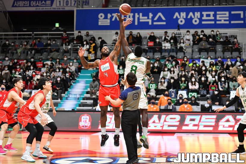 23일 고양종합체육관에서 열린 2021-2022 KGC인삼공사 정관장 프로농구 고양 오리온과 원주 DB 경기에서 오리온이 4쿼터 역전 끝에 75-73으로 승리를 거뒀다. 오리온-DB 경기화보.
