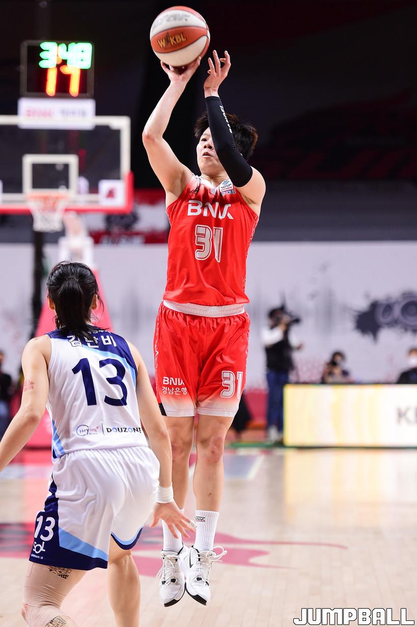진안이 해결사로 나섰다. 1분 7초를 남기고 점퍼를 성공했고, BNK는 동점 위기에서 벗어났다.