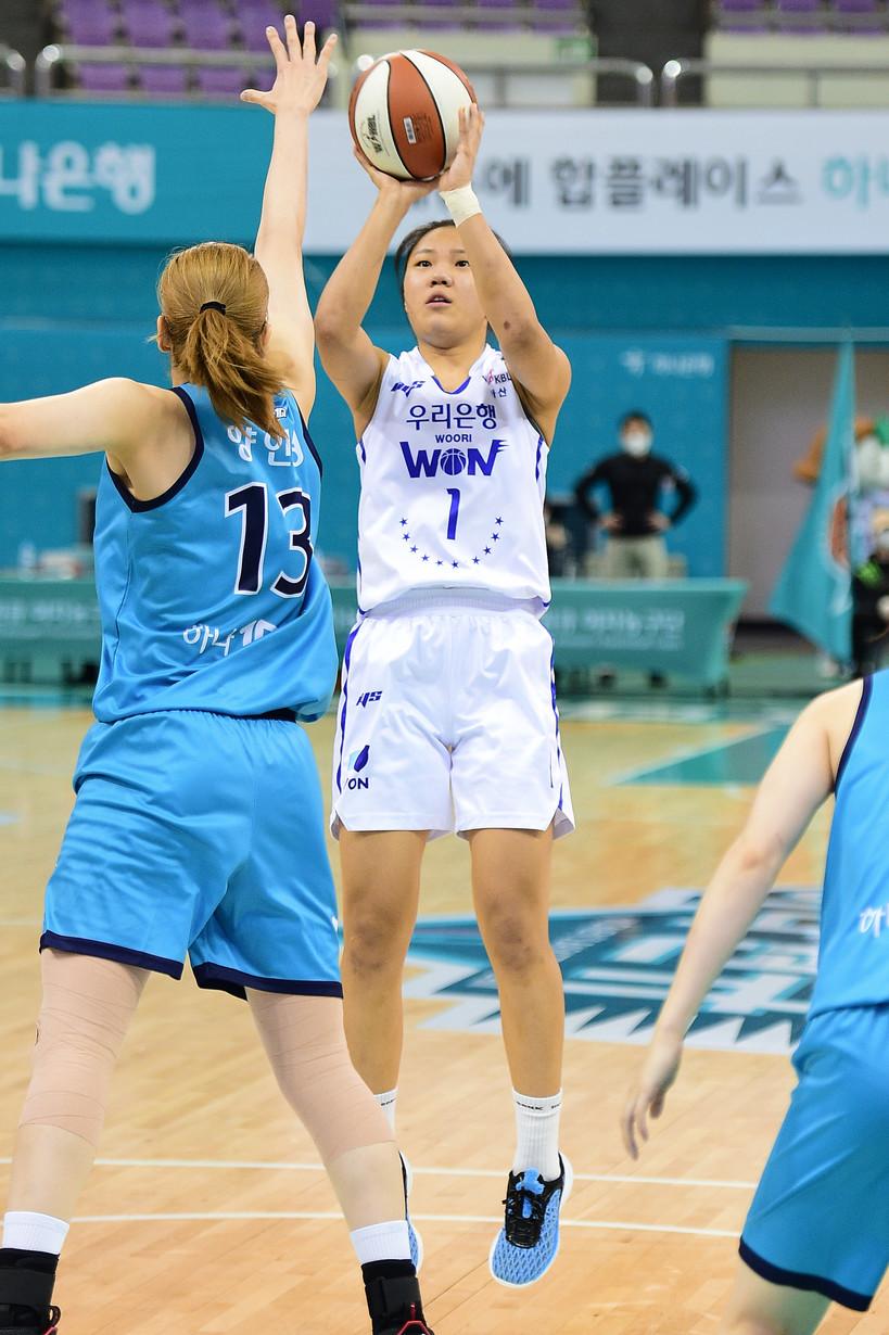 이후 경기 양상은 우리은행의 흐름이었다. 우리은행은 달아나는 점수를 올리지는 못했지만 경기 막판 상대 실책으로 공격권을 가져오며 2점 차 신승을 거뒀다.