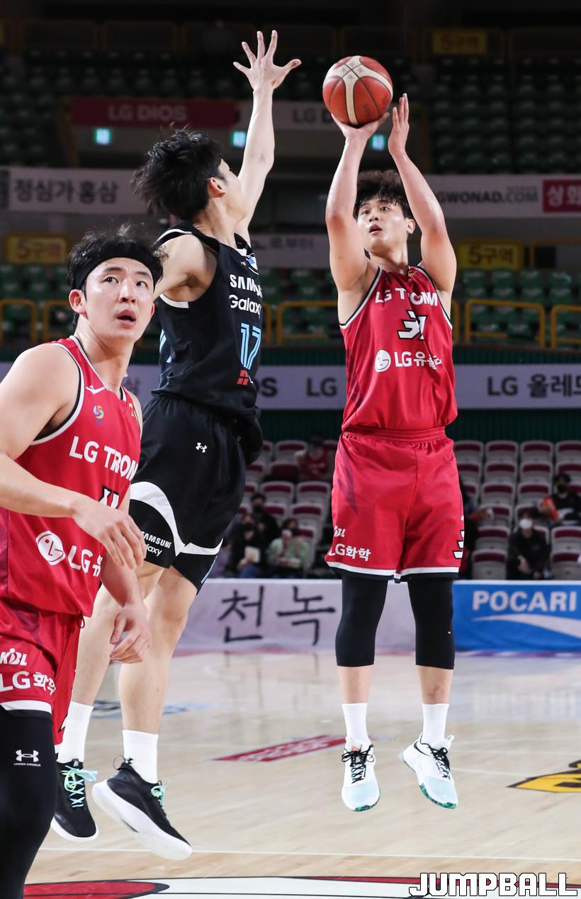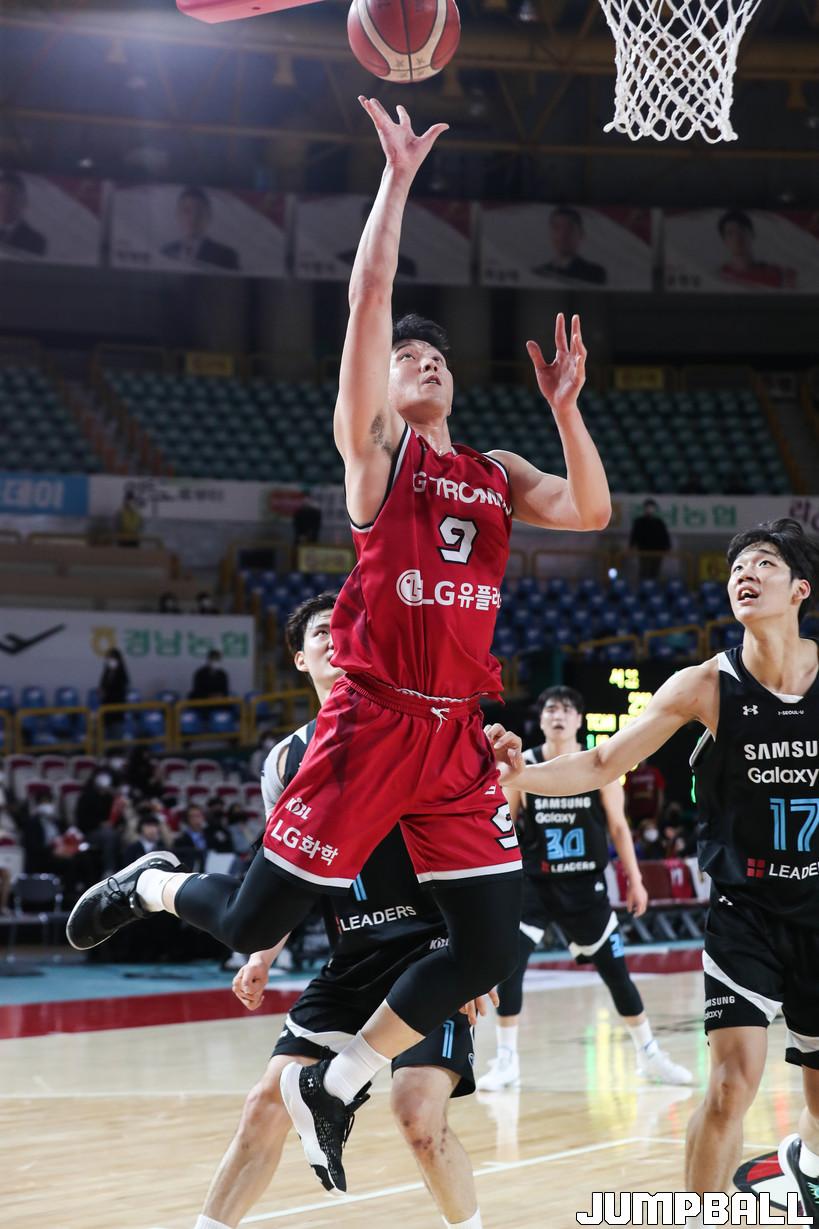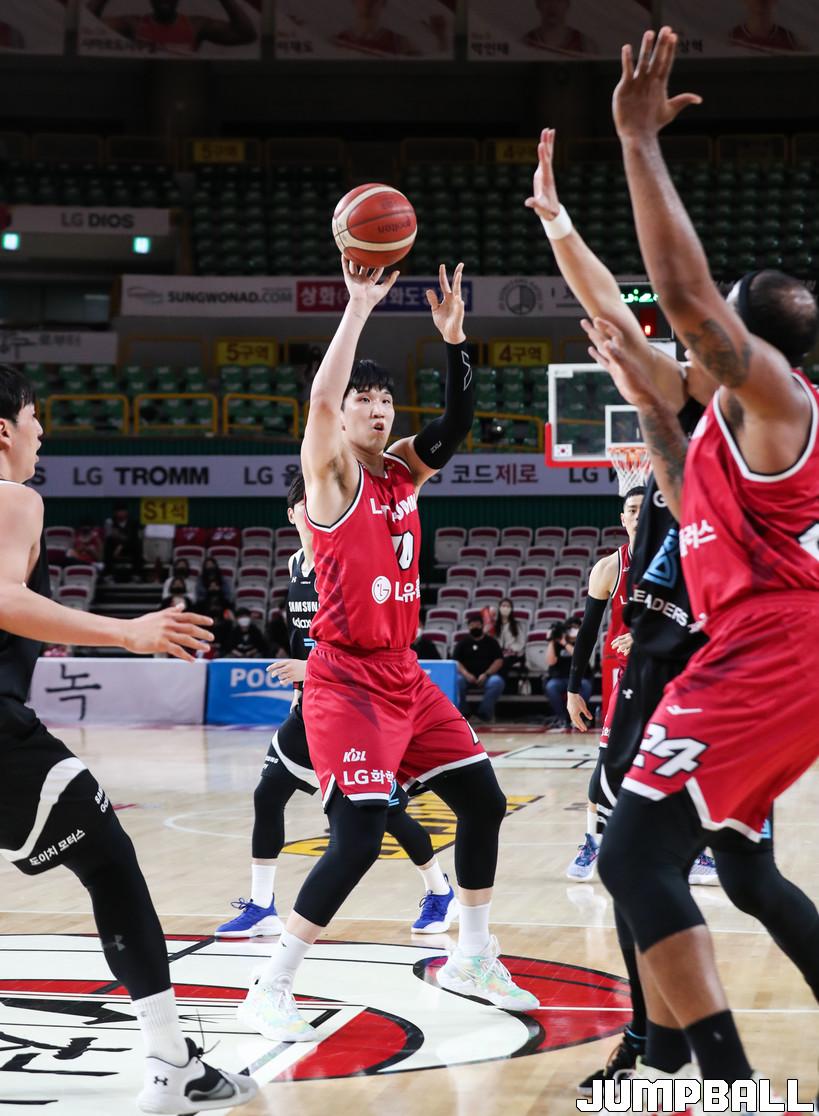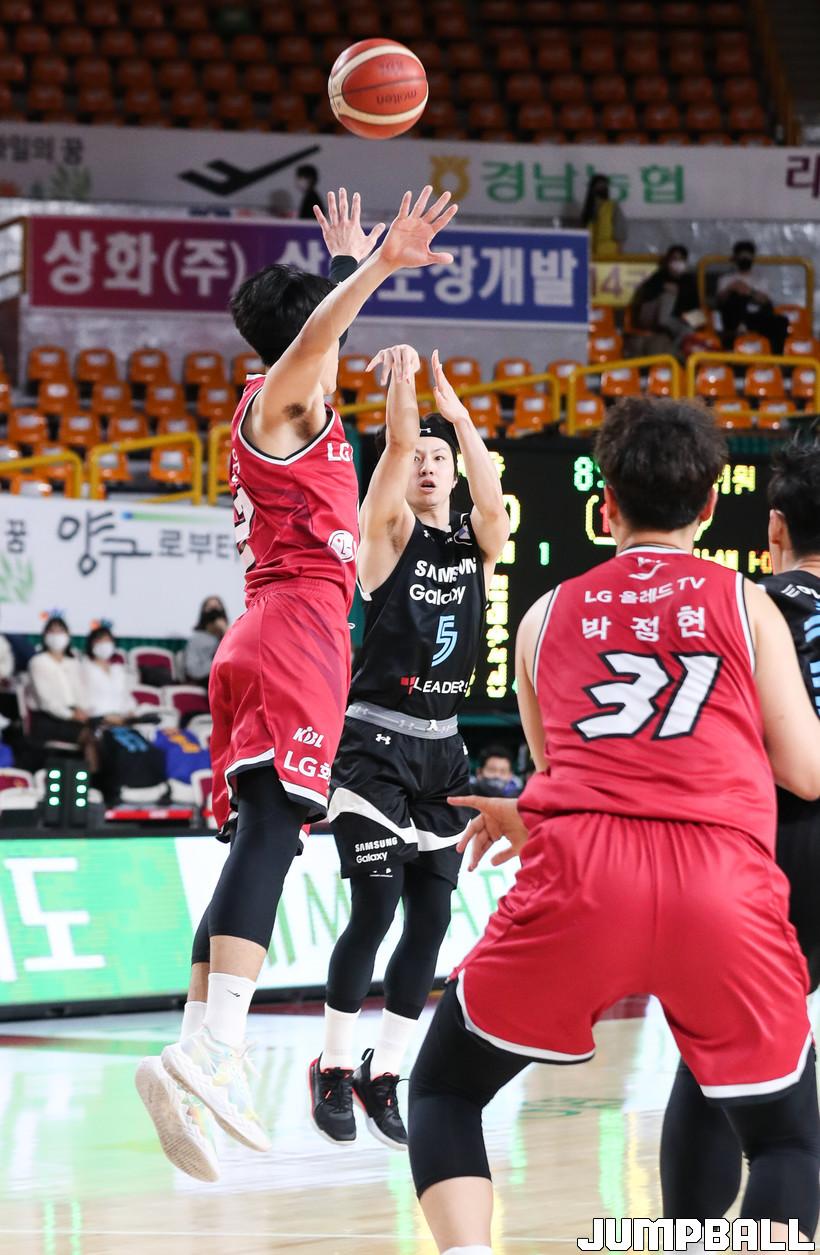 [점프볼=윤민호 기자]LG는 31일 창원체육관에서 열린 2021-2022 KGC인삼공사 정관장 프로농구 서울 삼성과의 올 시즌 마지막 맞대결에서 91-72로 승리했다.