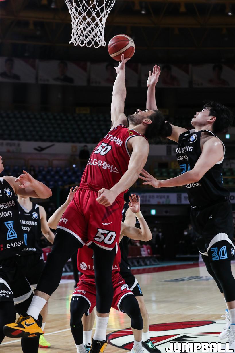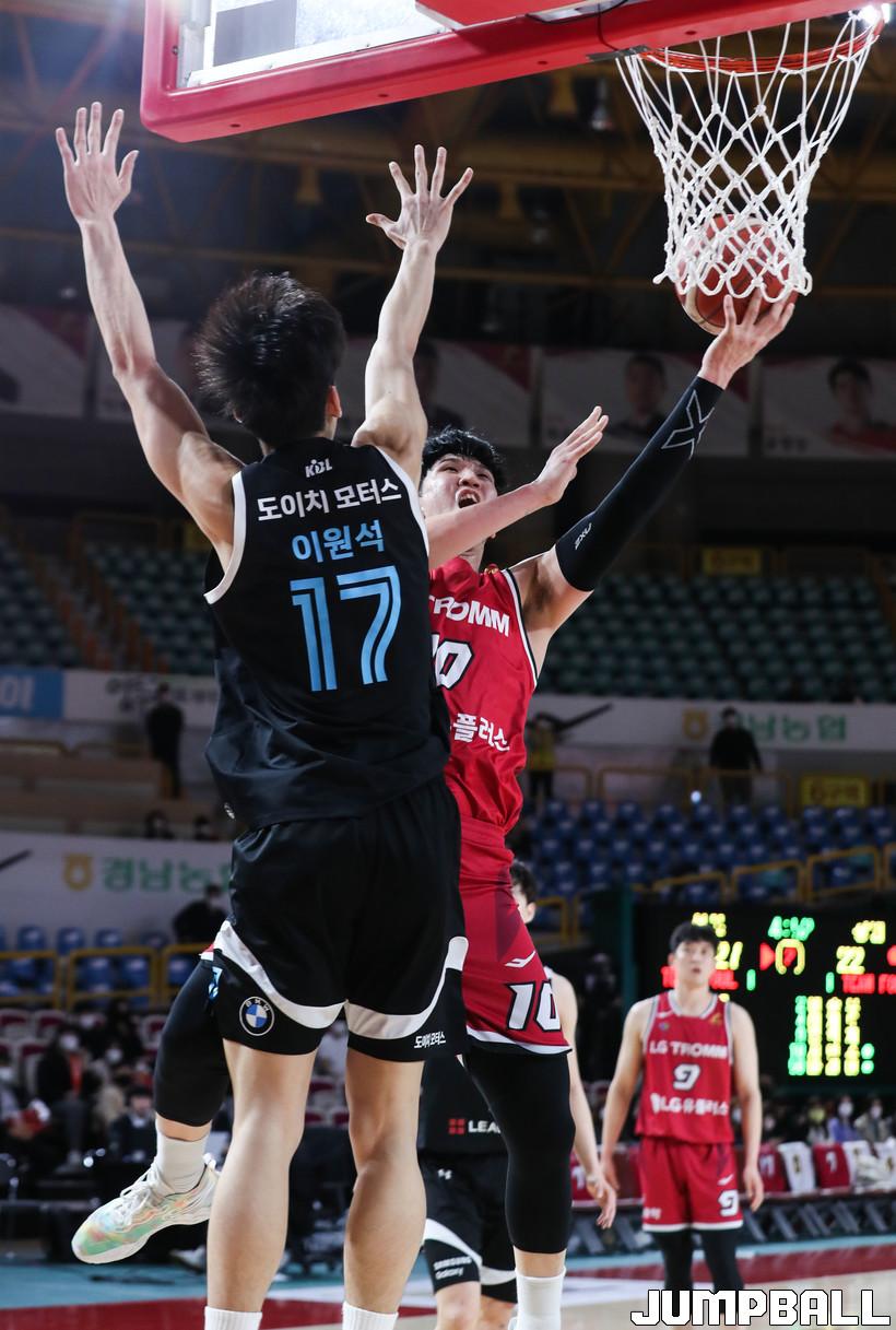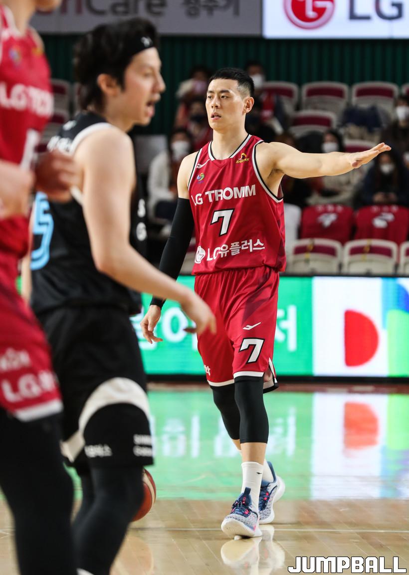 [점프볼=윤민호 기자]LG는 31일 창원체육관에서 열린 2021-2022 KGC인삼공사 정관장 프로농구 서울 삼성과의 올 시즌 마지막 맞대결에서 91-72로 승리했다.