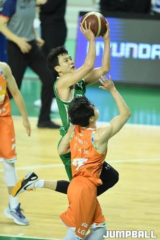 5일 원주종합체육관에서 열린 2021-2022 KGC인삼공사 정관장 프로농구 원주 DB와 창원 LG의 경기, DB 정준원이 슛을 던지고 있다.