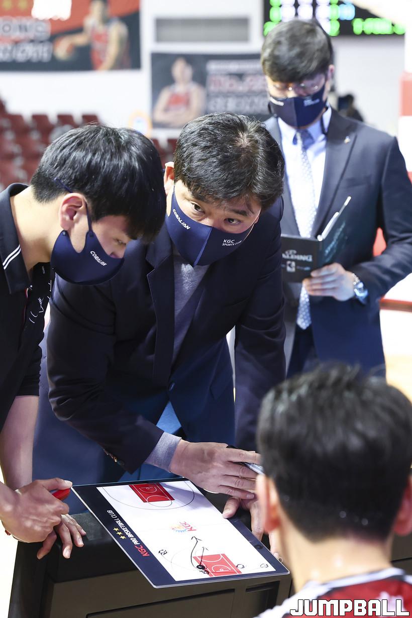 KGC 김승기 감독은 “어려운 상황에서 시즌을 시작했다. (이)재도(LG)가 이적했고, 훈련도 많이 하지 못했다. 부족한 부분을 채워주기 위해 노력했는데 잘 채워졌다. 시즌 시작 전에 목표를 31승을 잡아놓고 지키려고 노력했다. 목표보다 1승이 많아서 기쁘다. 생각했던 대로 잘 진행이 돼서 여기까지 왔다. 중간이 위기가 없지 않았지만 잘 극복하고, 이 자리까지 왔다. 선수들한테 즐겁게 플레이오프 대비하자고 이야기했다”며 정규리그를 마친 소감을 말했다.
