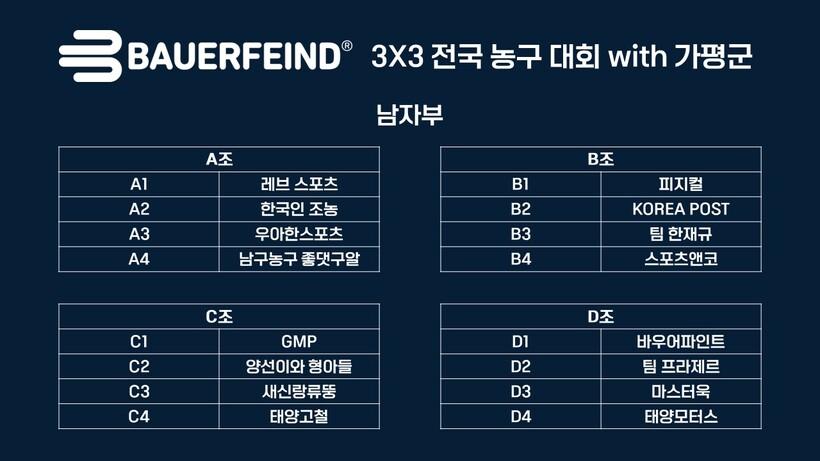 *제1회 바우어파인트 3x3 전국농구대회 with 가평군 조 편성 결과*
