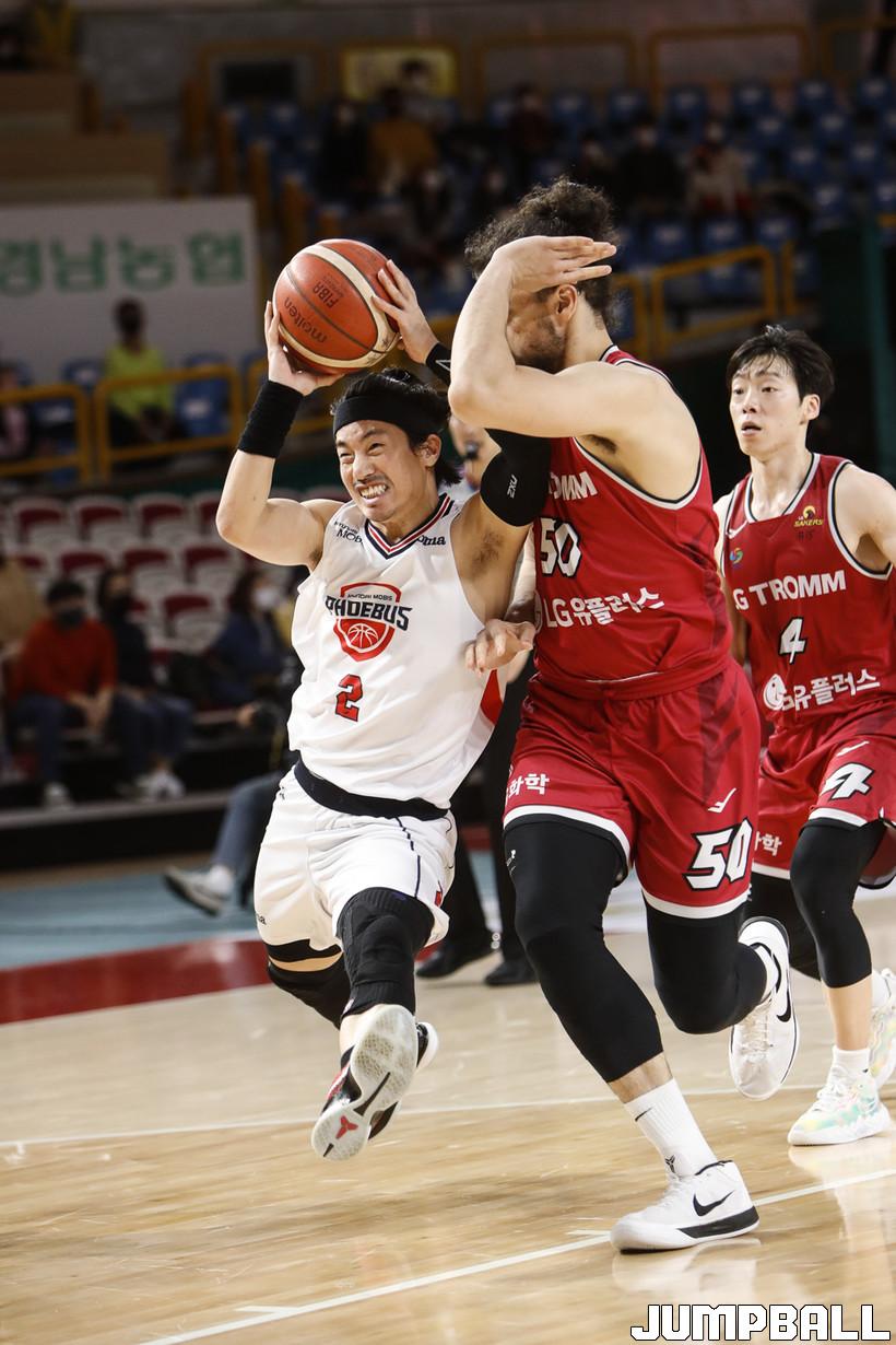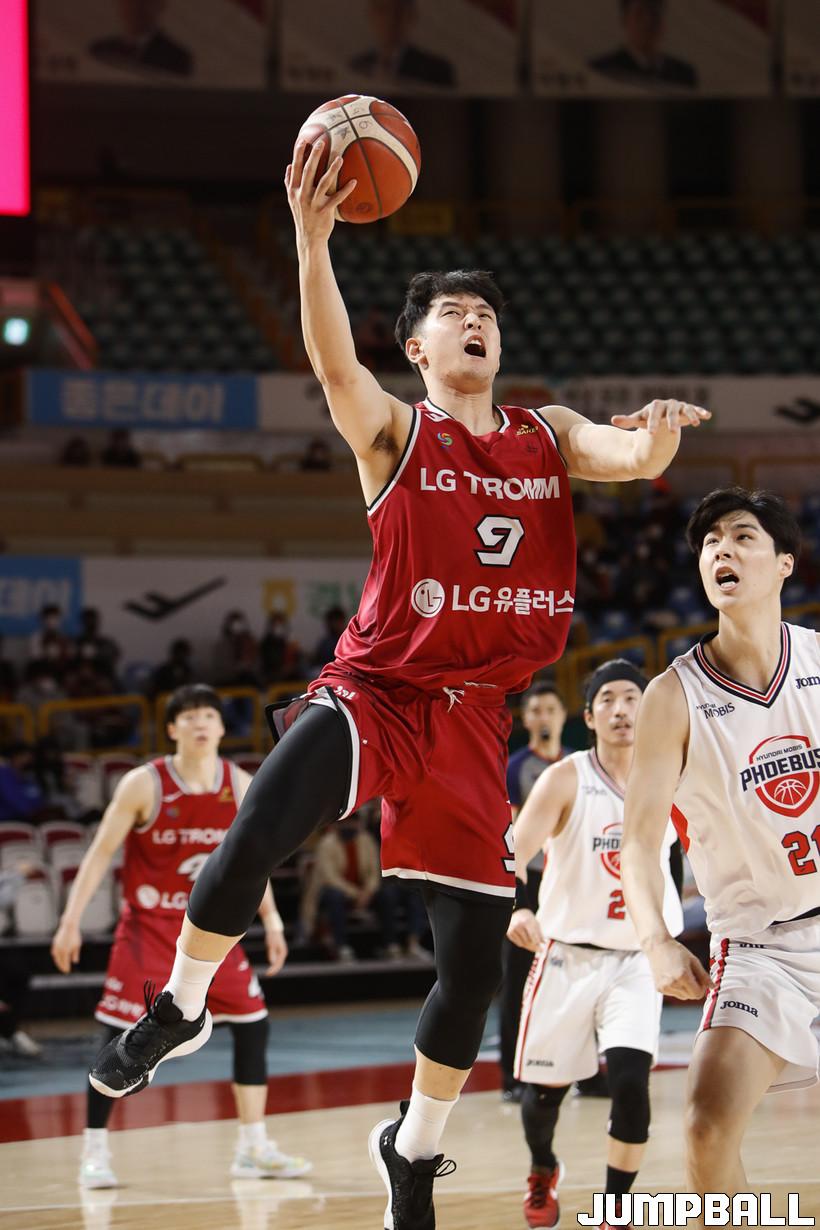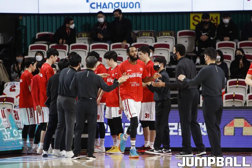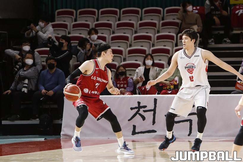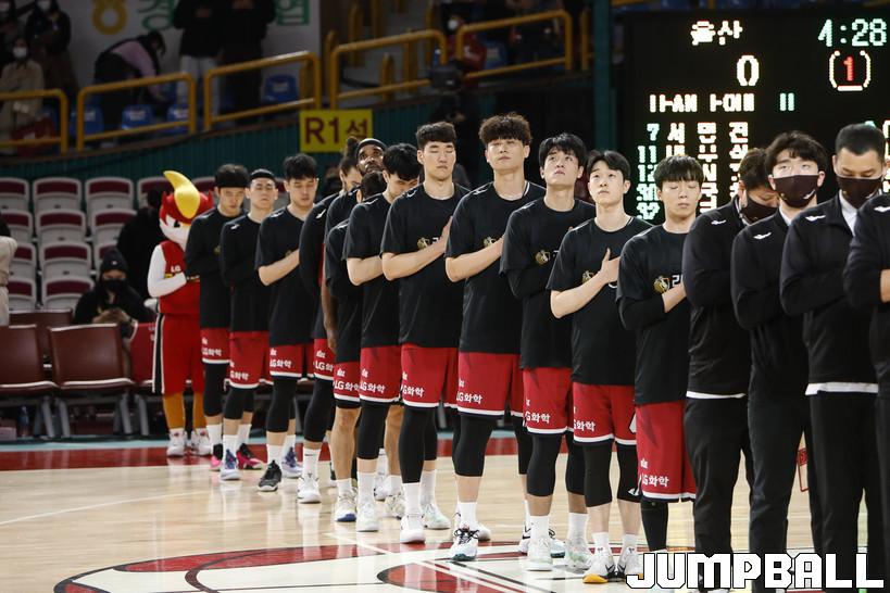 [점프볼=정을호 기자] 23 창원실내체육관에서 열린 2021-2022 KGC인삼공사 정관장 프로농구 창원 LG 울산 현대모비스의 경기, 창원 LG 울산 현대모비스에 72-65 승리하였다.  창원 LG 울산 현대모비스의 경기화보