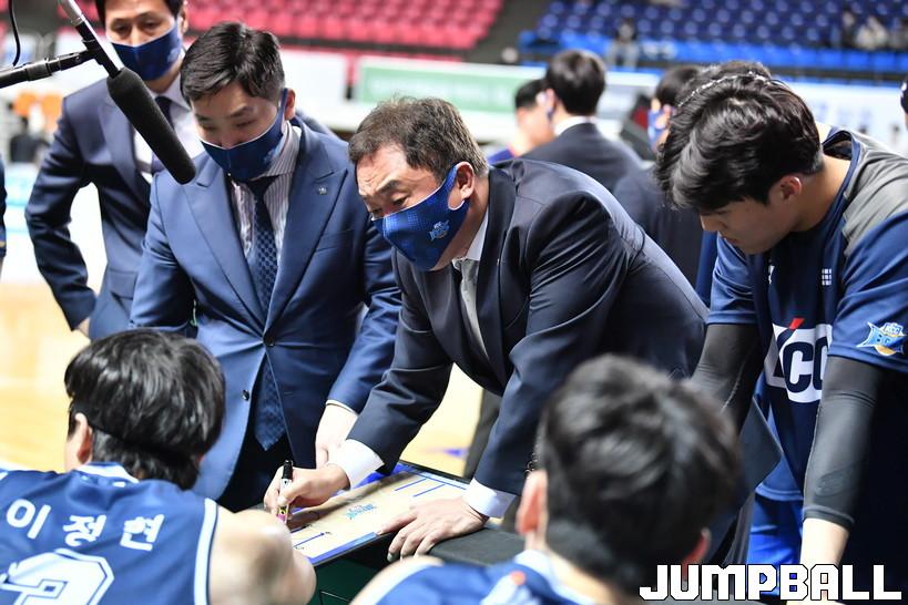 이날 KCC는 경기 전부터 악재가 닥쳤다. 정창영(햄스트링), 유현준(종아리), 송창용(발목), 김상규(허리)가 부상으로 모두 결장하게 된 것. 그럼에도 김지완과 라건아를 앞세워 3쿼터까지 리드를 지켰다. 데뷔 경기를 가진 신인 서정현도 돋보였다.
