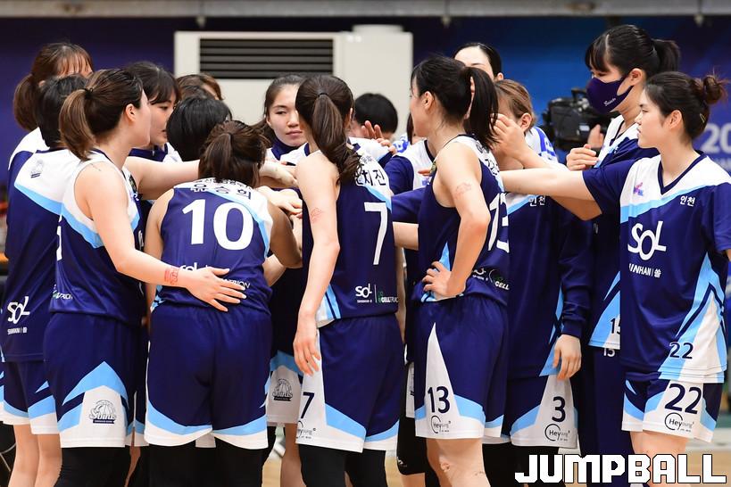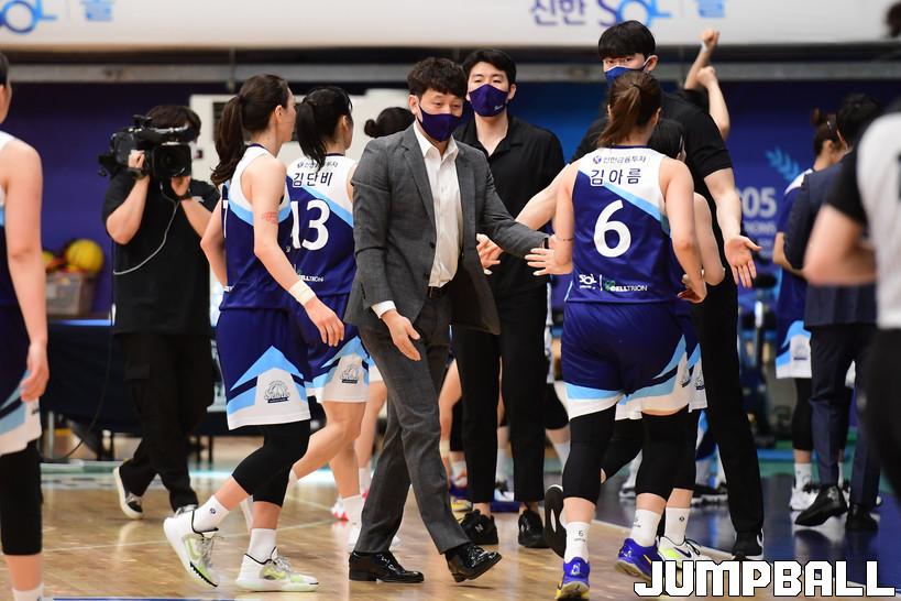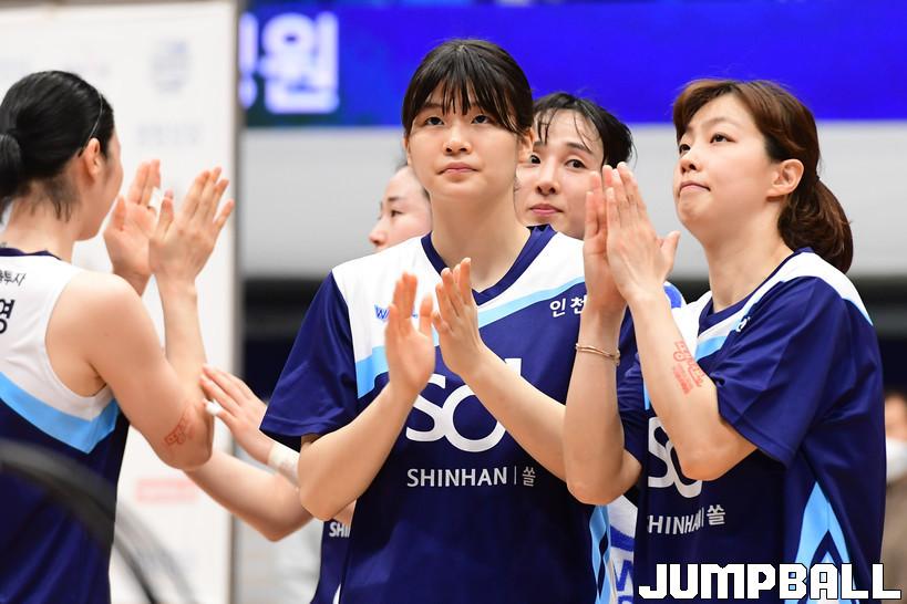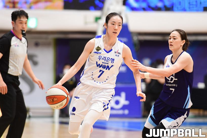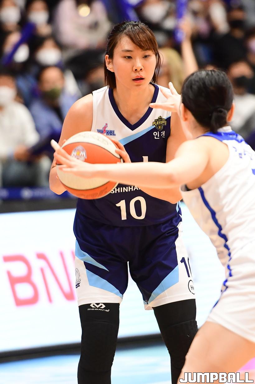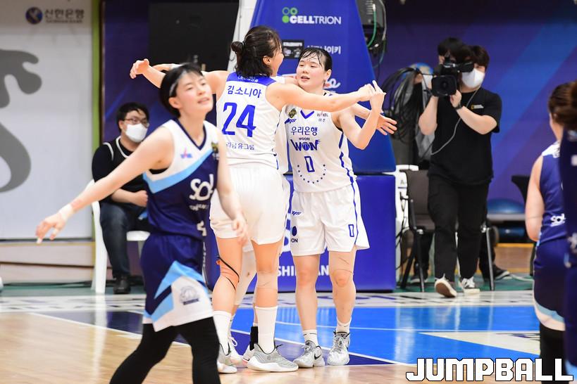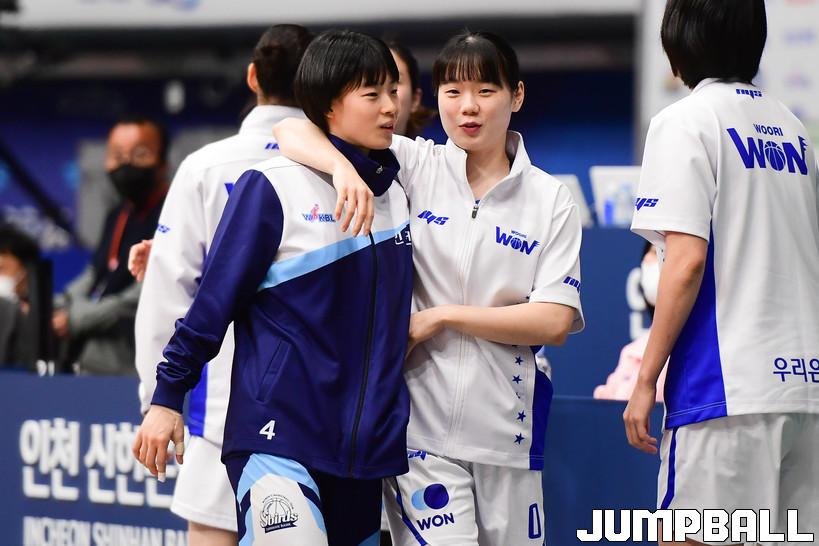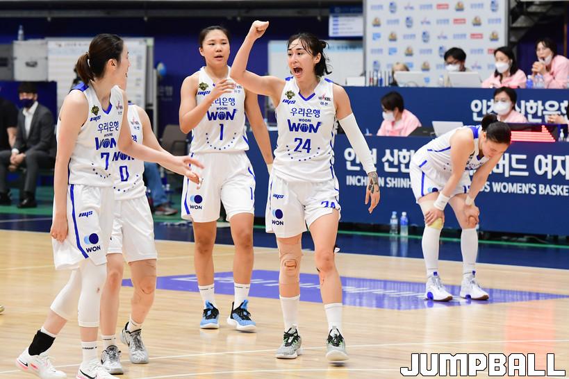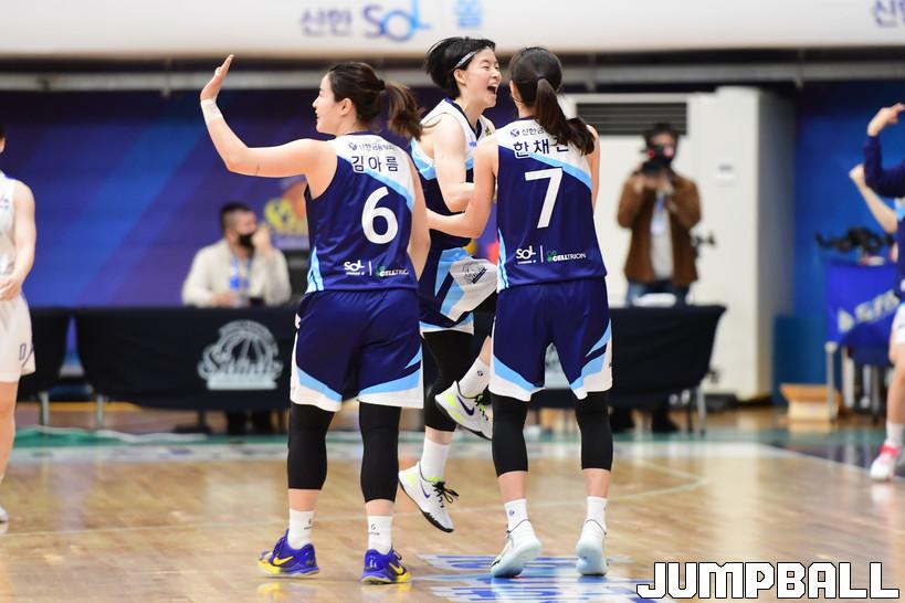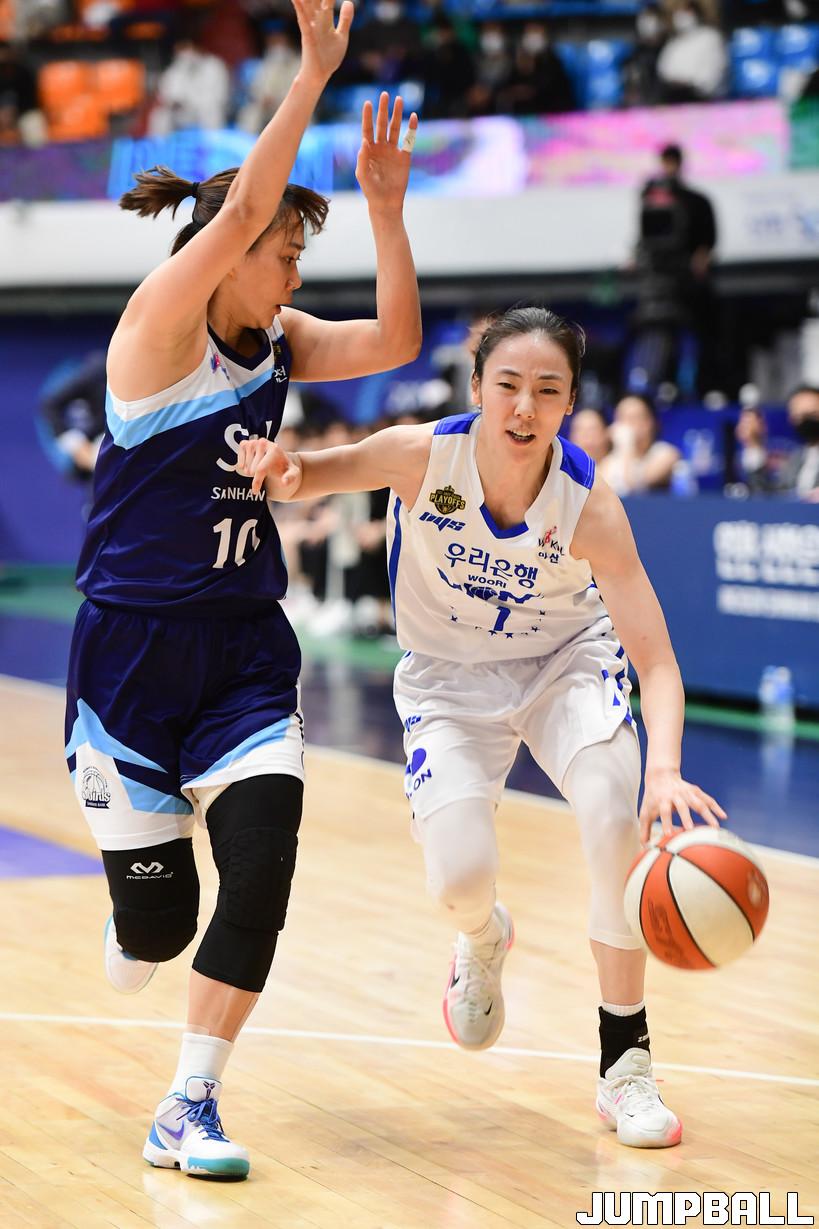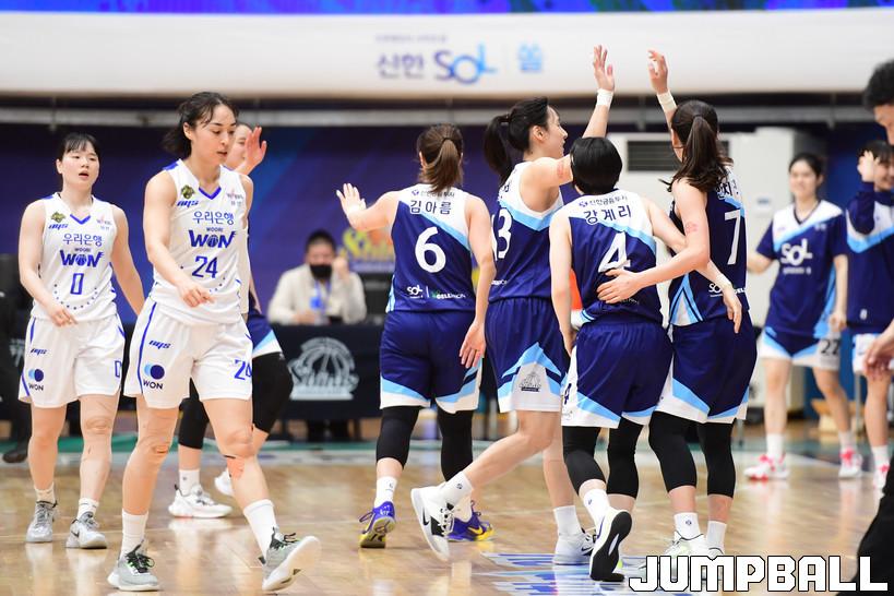 7일 인천도원체육관에서 열린 '삼성생명 2021-2022 여자프로농구 플레이오프' 인천 신한은행과 아산 우리은행의 경기, 우리은행이 신한은행에 66-60으로 승리하며 챔프전에 진출했다. 우리은행과 신한은행 경기 화보.