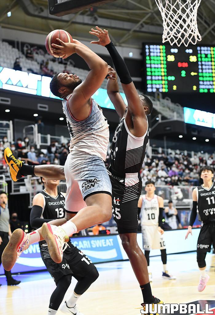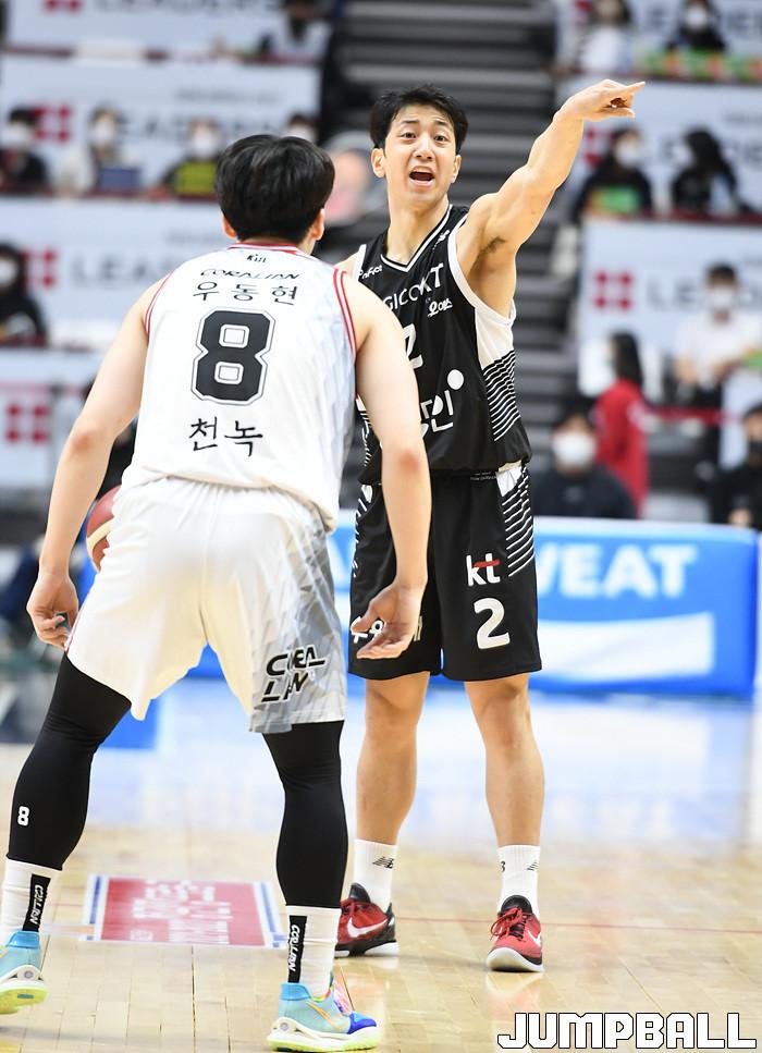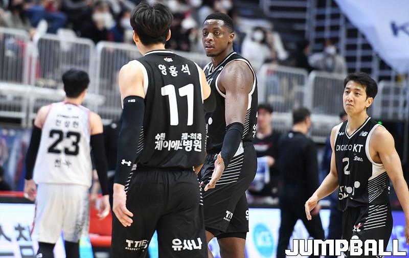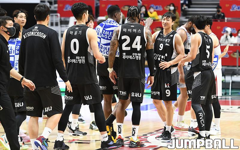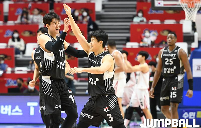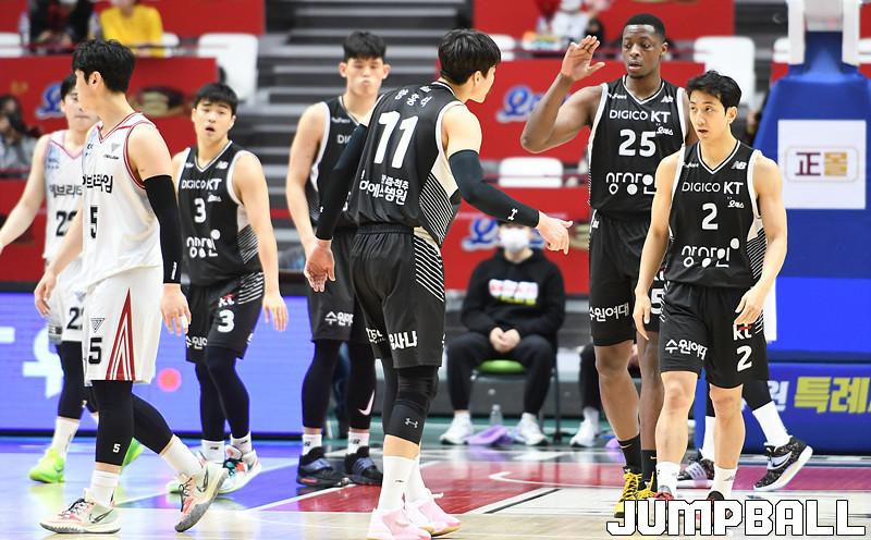 캐디 라렌(19점 15리바운드 4어시스트)이 더블더블을 작성한 가운데 정성우(19점 3리바운드 7어시스트 2스틸)는 공수에 걸쳐 기여했다. KT가 자랑하는 원투펀치 허훈(18점 3점슛 3개 3리바운드 4어시스트), 양홍석(18점 3점슛 3개 5리바운드 3어시스트)도 제몫을 했다.