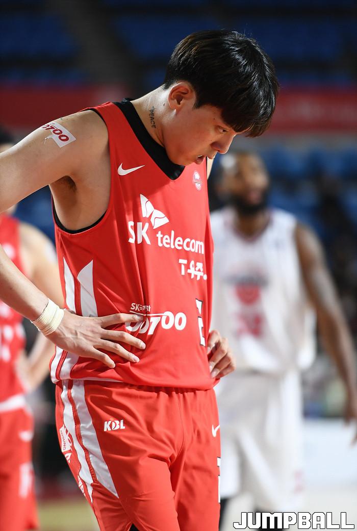 9일 잠실학생체육관에서 열린 2021-2022 KGC인삼공사 정관장 프로농구 서울 SK와 울산 현대모비스의 경기, SK 최준용이 아쉬움을 삼키고 있다.