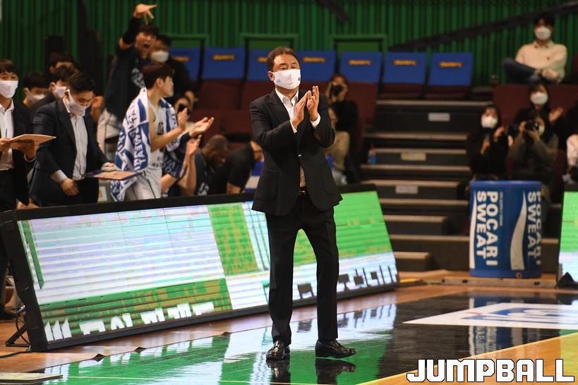 9위 KCC는 6위 원주 DB와의 승차를 1.5경기로 줄였다. 정규리그 종료까지 9경기 남겨두고 있어 아직 플레이오프를 포기하기엔 이르다. 전창진 감독은 이에 대해 “우리도 그 생각을 안 하는 건 아니지만, 코로나19 여파로 전반적으로 컨디션이 안 좋다. 다행히 우리는 선수들이 일찍 (코로나19에)일찍 걸린 편이어서 조금씩 나아지고 있다”라고 말했다.