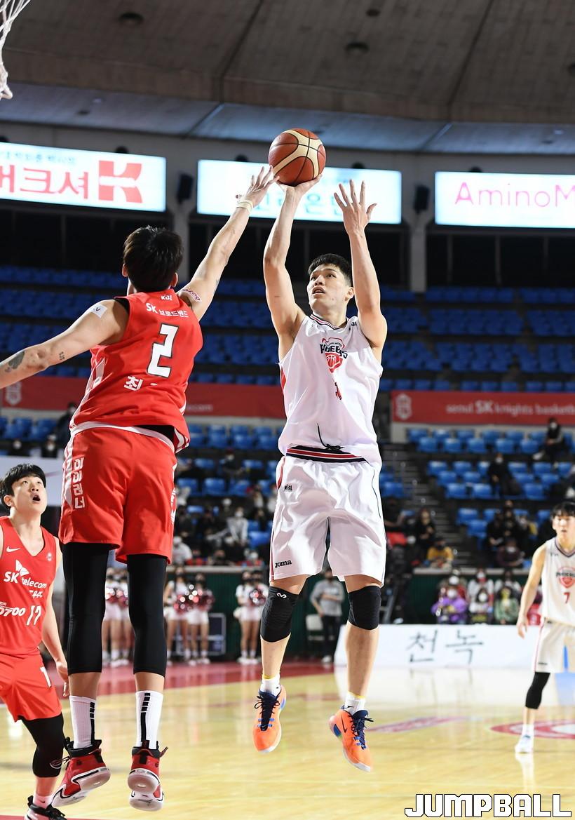 라숀 토마스가 무릎부상으로 이탈한 가운데 비중이 늘어날 수밖에 없는 상황에 대해서는 “SK도 외국선수가 한 명밖에 없어서 국내선수들끼리 뛰는 상황이 있었는데 사실 이런 상황에선 자신이 있다. 내가 키가 크기도 하고 원래 외국선수가 없을 때 보드 장악을 할 수 있다. (함)지훈이 형이랑 호흡을 맞출 일이 별로 없었는데 오늘은 잘 할 수 있었다. 라숀 토마스 없이도 한 번 해보자고 했던 거 같다”며 자신감을 드러냈다.
