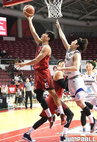 22일 안양실내체육관에서 열린 2021-2022 KGC인삼공사 정관장 프로농구 안양 KGC인삼공사와 서울 삼성의 경기, 삼성 김시래가 순간 돌파로 레이업을 하고 있다.