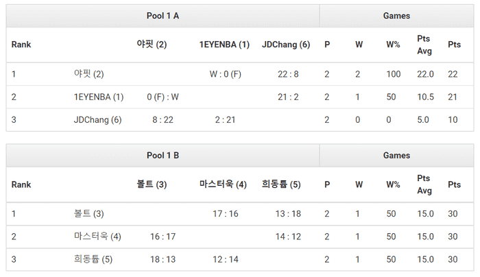 B조에선 역시나 강력한 우승후보로 거론되는 볼트와 마스터욱이 순조롭게 예선을 통과해 여자오픈부 우승 도전에 나선다.