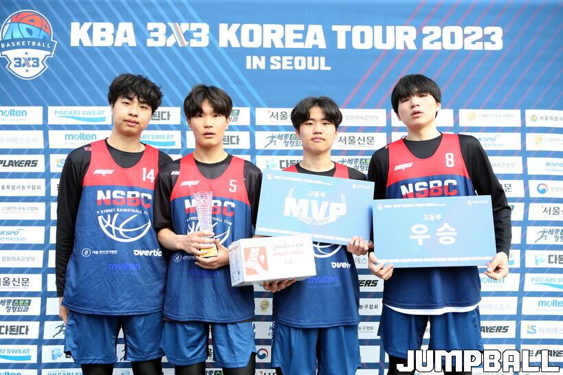 NSBC는 16일 서울신문사 앞 광장(서울마당)에서 열린 KBA 3x3 KOREA TOUR 2023 1차 서울대회 고등부 결승에서 식스맨을 상대로 18-11로 승리했다.
